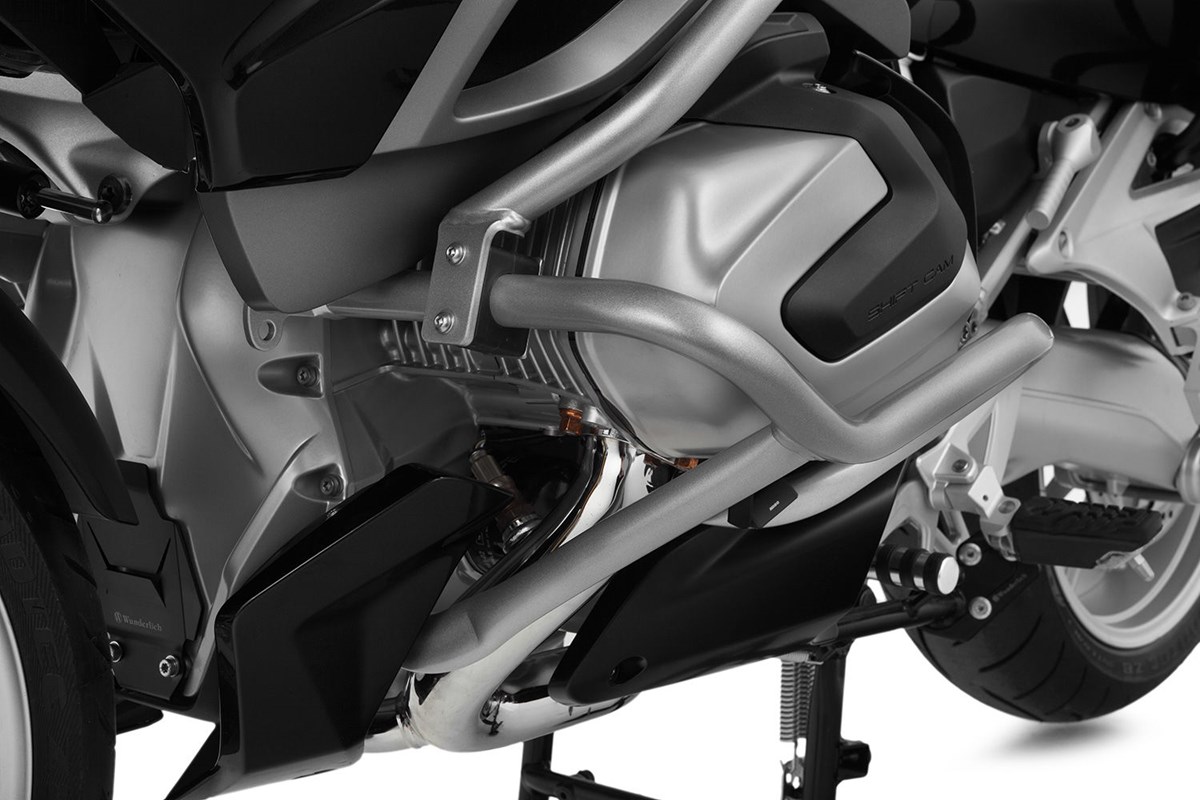Der Motorschutzbügel schützt nicht nur zuverlässig die Zylinder und Ventildeckel, sondern auch die beiden Lambdasonden. Das Rundumschutzkonzept erhöht die passive Sicherheit und damit die Freude beim Fahren. Im Falle eines Sturzes oder Umfallers werden die wirkenden Kräfte optimal über die Schutzbügelstruktur auf die belastbaren Aufnahmepunkte verteilt, sodass Kraftspitzen vermieden werden.