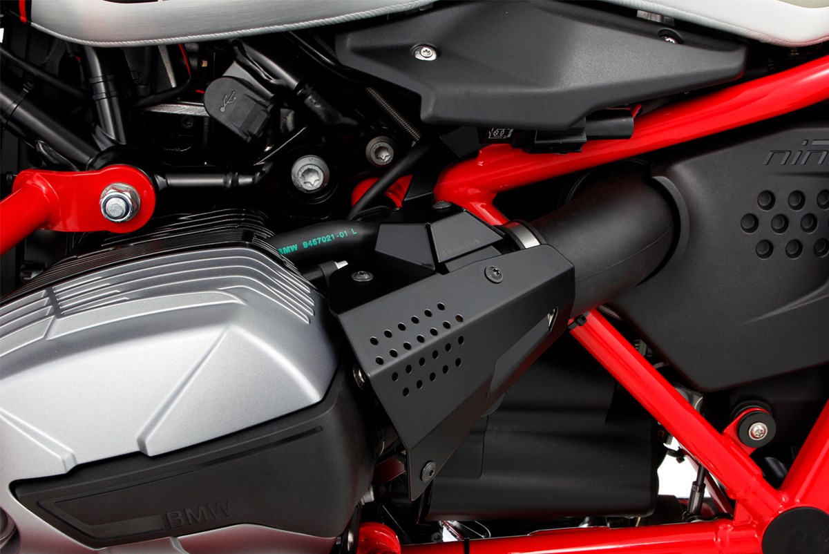 Die Abdeckungen der Einspritzanlage schützen den Ansaugrohrbereich samt Einspritzrohr, Leitungsanschlüssen und den Drosselklappensensor. Immer wieder kommt es zu Undichtigkeiten an den Steckverbindungen, die auf vermehrtes Hängenbleiben mit den Stiefeln oder der Hose zurückzuführen sind. Mit diesen schützenden Abdeckungen aus eloxiertem Aluminium ist das nicht mehr möglich. Zusätzlich schützen sie vor Manipulation der Stöpsel und Steckverbinder.