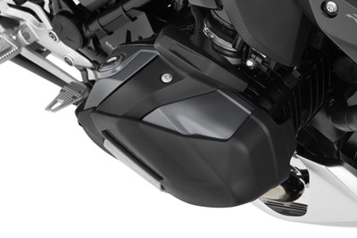 Die Zylinder einer Boxer-BMW sind exponiert. Steinschlag, ein Umfaller im Gelände oder beim Streifen einer verputzen Wand beim Rangieren in enger Umgebung besteht leicht die Gefahr des Zerkratzens der Ventildeckel. Bei den 1250er Shiftcam-Motoren kommt hinzu, dass die Konstruktion des Shiftcam-Mechanismus ausgesprochen aufwändig ist. Da die Ventildeckel ausschließlich kraftschlüssig montiert sind besteht die Gefahr, dass sich der Ventildeckel bei jeglicher Gewalteinwirkung relativ zum Zylinderkopf verschiebt und den aufwendigen Ventiltrieb unter Umständen in Mitleidenschaft zieht. Deshalb kommt dem zusätzlichen Schutz der Ventildeckel eine besondere Bedeutung zu. Wir haben dafür einen Satz durchdachter Protektoren entwickelt. Diese zeichnen sich dadurch aus, dass sie mit engem Spaltmaß, konturgenau am Ventildeckel anliegen. Dies setzt eine präzise Fertigung voraus.