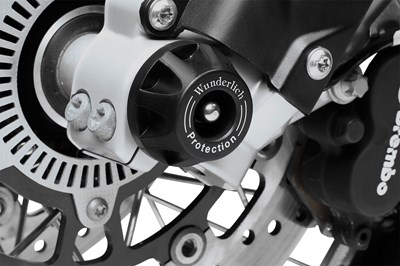 Die Achs-Schutzpads sorgen im Falle des Umfallens des Motorrads oder bei einem Sturz dafür, dass die Gabel, die Radachse und Bremsanlage effektiv vor Beschädigungen geschützt werden.