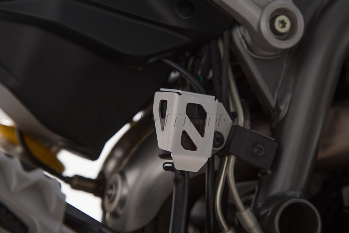 Zum Schutz des Original-Bremsflüssigkeitsbehälters. Neben der schönen Optik verhindert der Schutz ebenfalls das ungewollte Entfernen des Deckels. Material: Aluminium gebürstet.