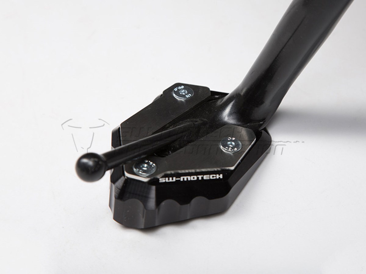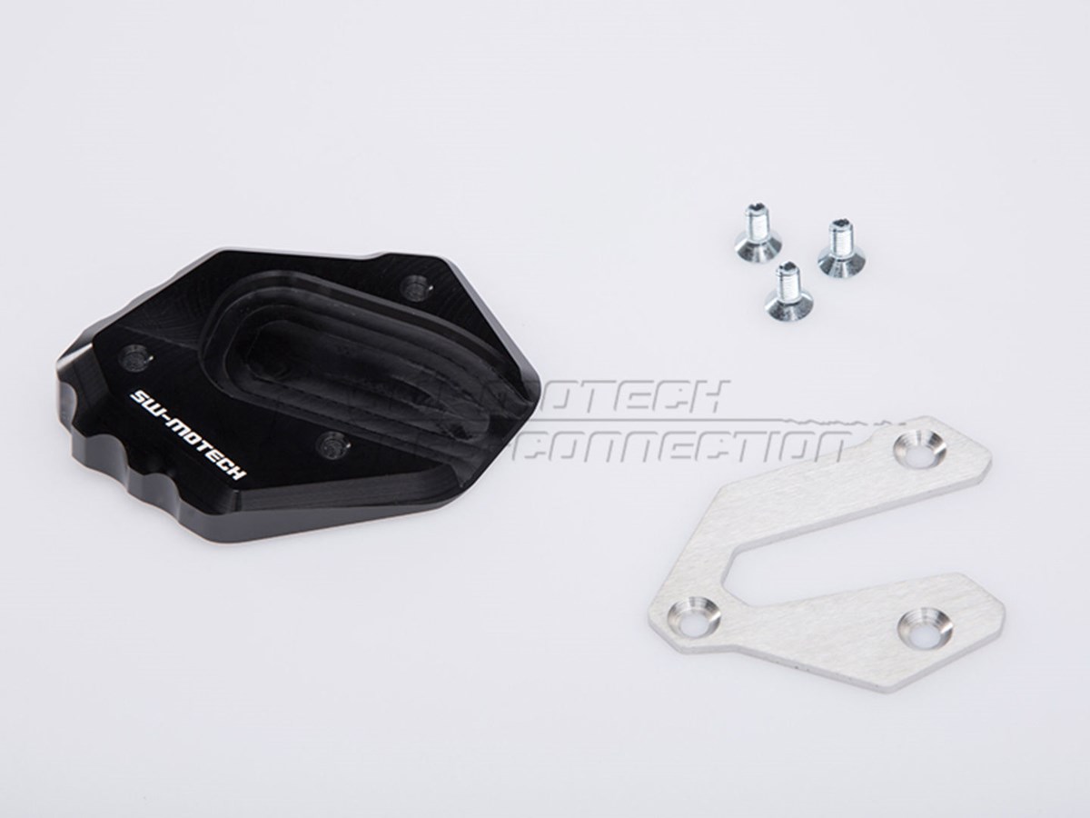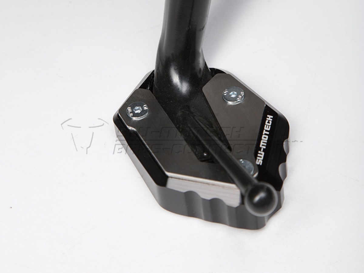 Die formschöne Fussverbreiterung ist aus hochfester Aluminium-Legierung CNC-gefrässt. Dank der grosszügigen Auflagefläche wird ein Versinken auf weichem Untergrund verhindert. Der Verbreiterungsfuss ist silber eloxiert, das obere Anbaublech schwarz pulverbeschichtet.
