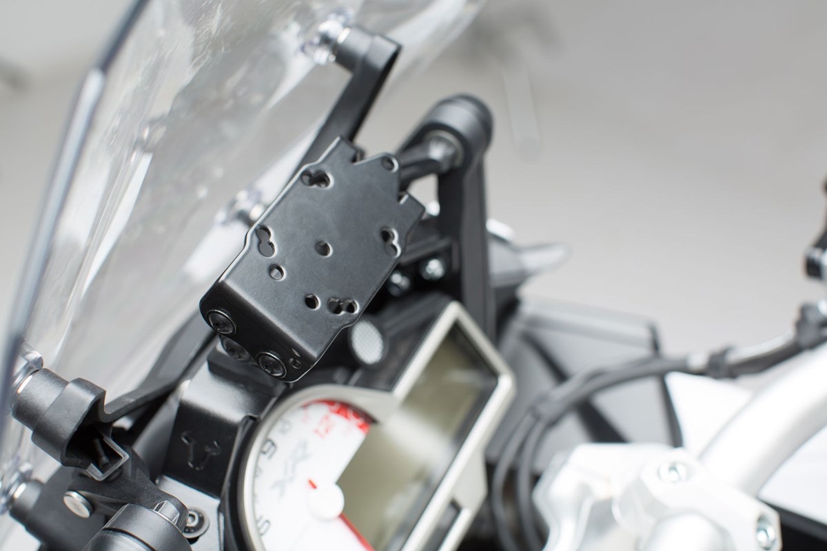 Abnehmbare GPS-Halterung für sorgenfreies Pausieren. Der GPS-Halter und das GPS-Gerät lassen sich in sekundenschnelle ab- und anmontieren. Vibrations- und Stossübertragungen werden weiterhin reduziert.