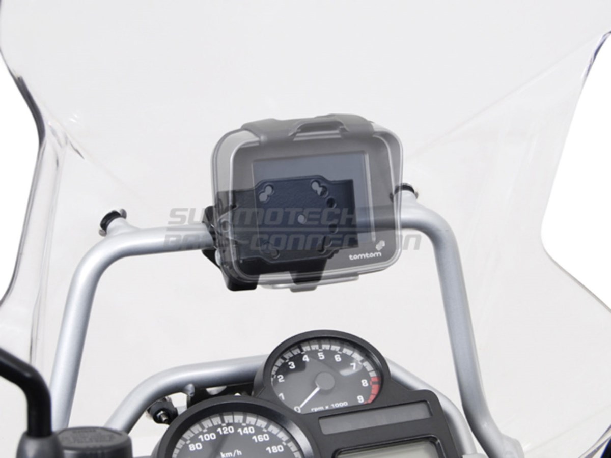 Abnehmbare GPS-Halterung für sorgenfreies Pausieren. Der GPS-Halter und das GPS-Gerät lassen sich in sekundenschnelle ab- und anmontieren. Vibrations- und Stossübertragungen werden weiterhin reduziert.