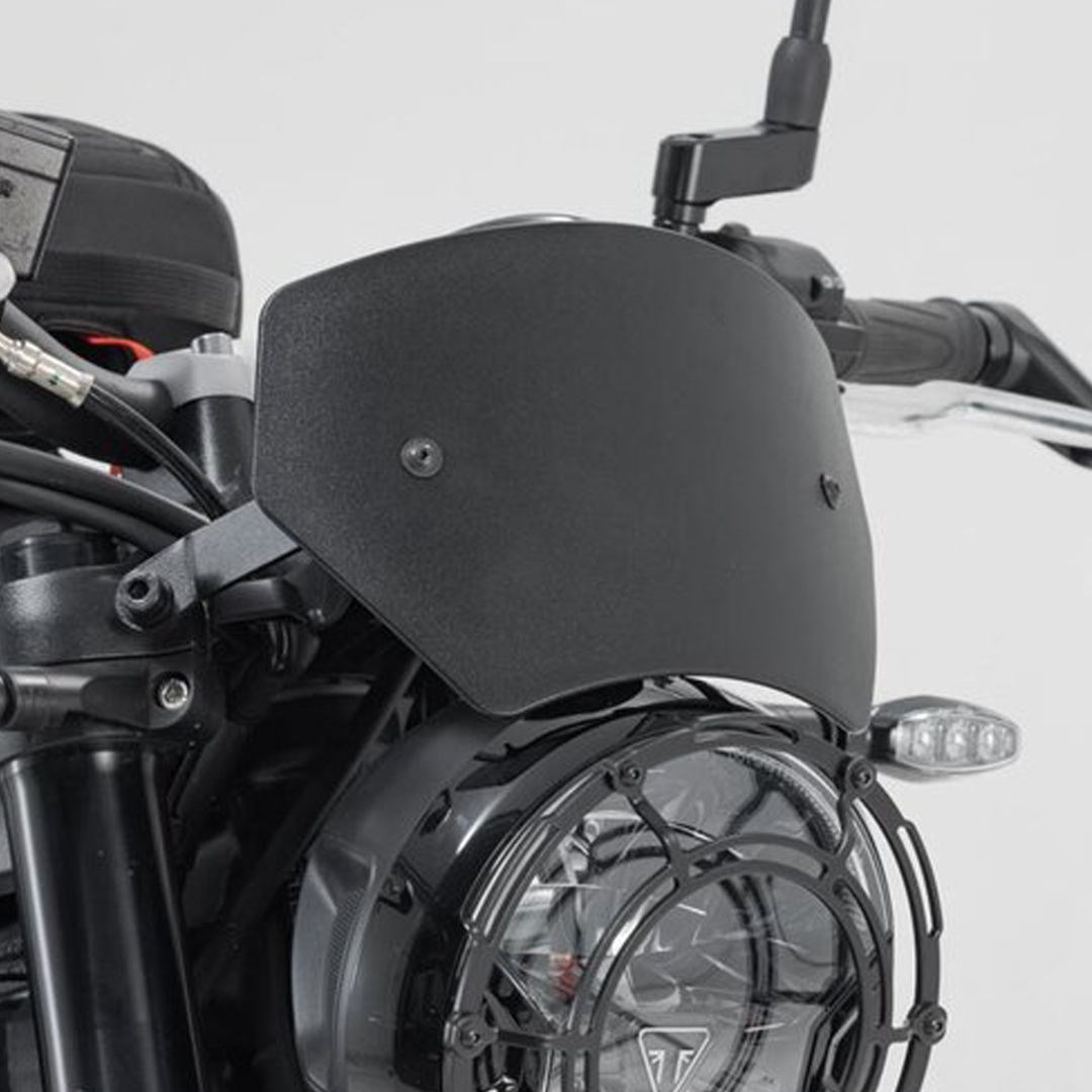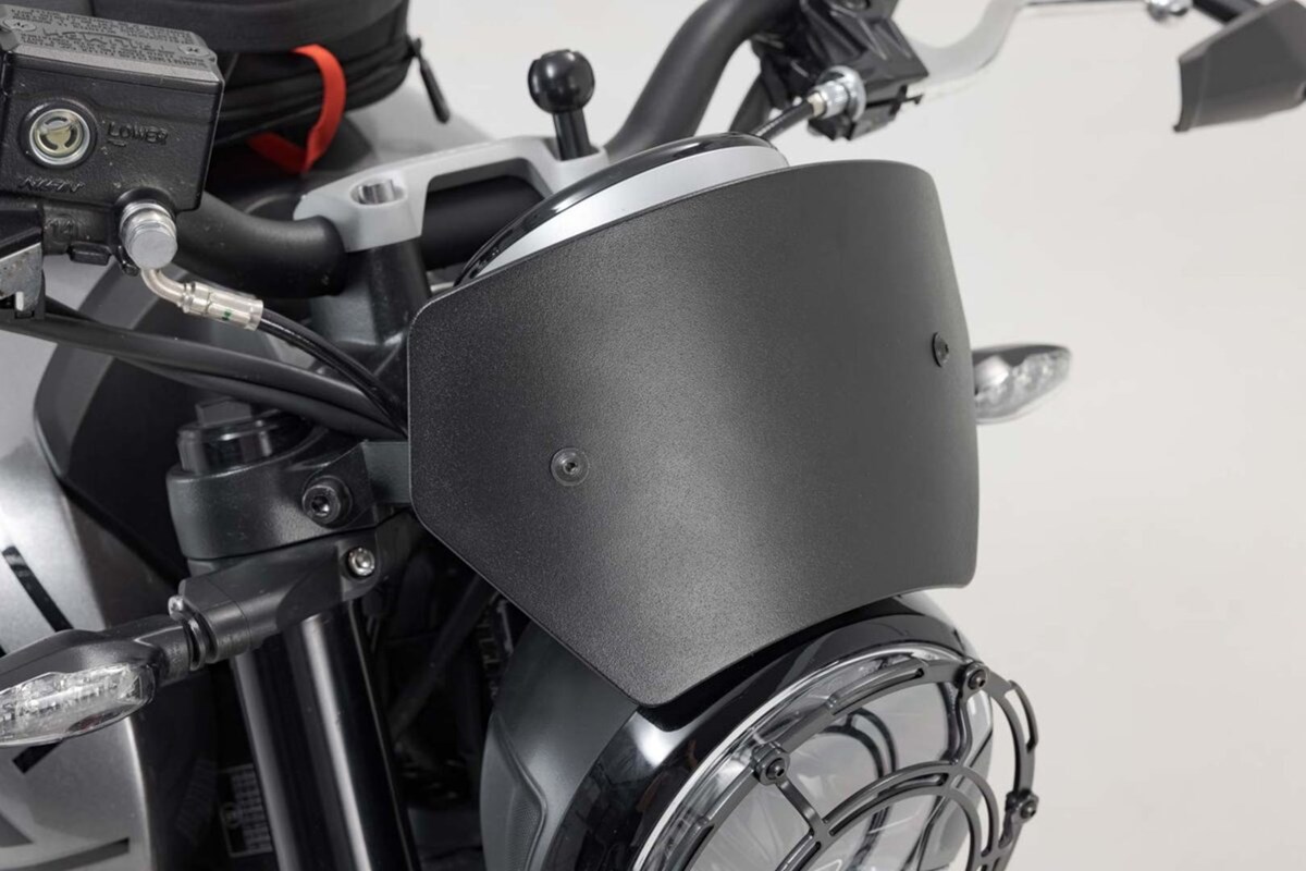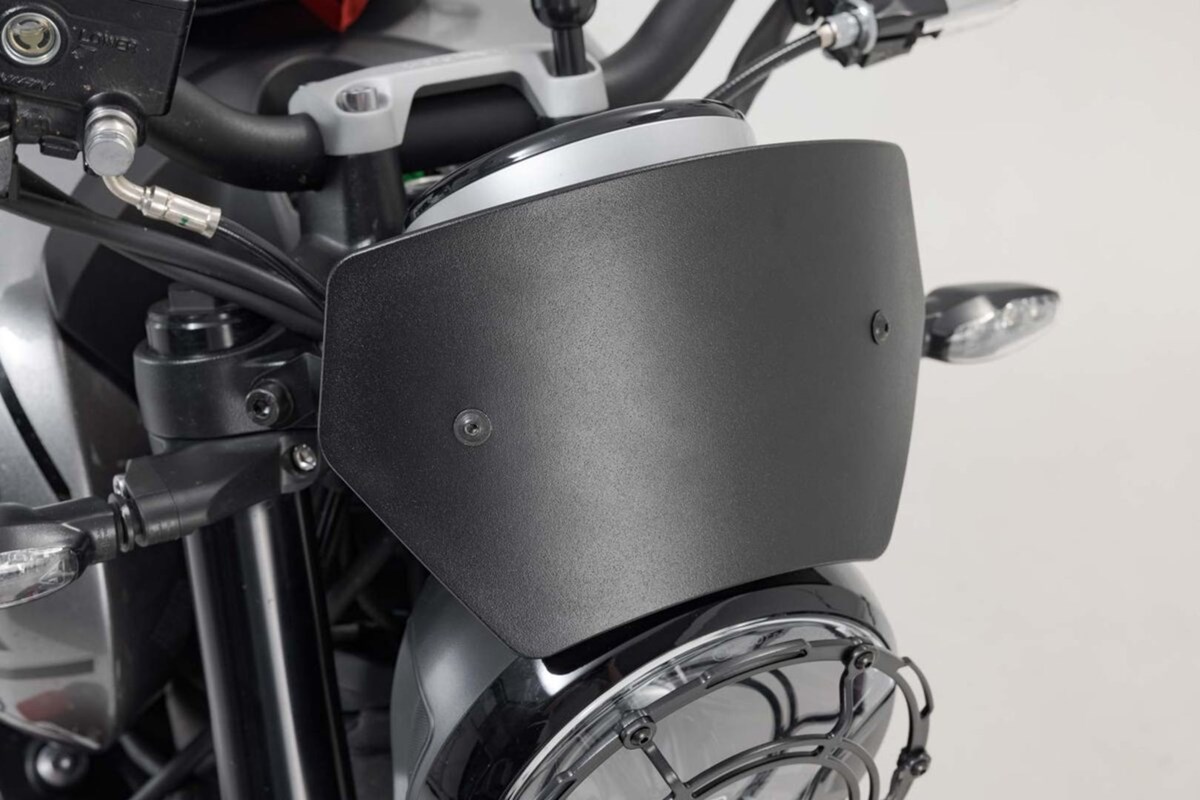 Das Windschild aus gebürstetem Aluminium verleiht jedem Motorrad eine individuelle Note - besonders in Kombination mit weiterem Zubehör wie dem Kotflügel-Kit oder den Mini-Blinkern.