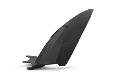 Unsere formschlüssig integrierte Kotflügelerweiterung, die 135 mm länger und 50 mm breiter als der Serienkotflügel ist, vergrößert den Schutzbereich erheblich und schützt die angesprochenen Technikkomponenten. Sie fängt aufgewirbeltes Wasser und Straßenschmutz auf und leitet beides zuverlässig nach unten ab. Gleichzeitig wird der Schutz von Fahrer und Sozius gegen Gischt und Schmutz im Bereich der Füße und Unterschenkel effektiv optimiert.
