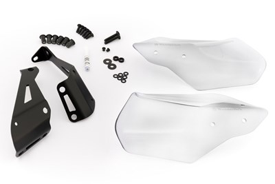 Wir haben unsere Handprotektoren zur Wasserableitung mit einem nach außen ragenden Kragen versehen, der Spritzwasser nach außen lenkt und seitlich abfließen lässt. Abgesehen von der Funktionalität sind unsere Handprotektoren dezent und ansprechend designt. Die Handprotektoren bestehen aus Acryl, sie sind thermisch beständig, kratz- und bruchfest und unempfindlich gegenüber Benzin. Sie lassen sich einfach und schnell montieren.