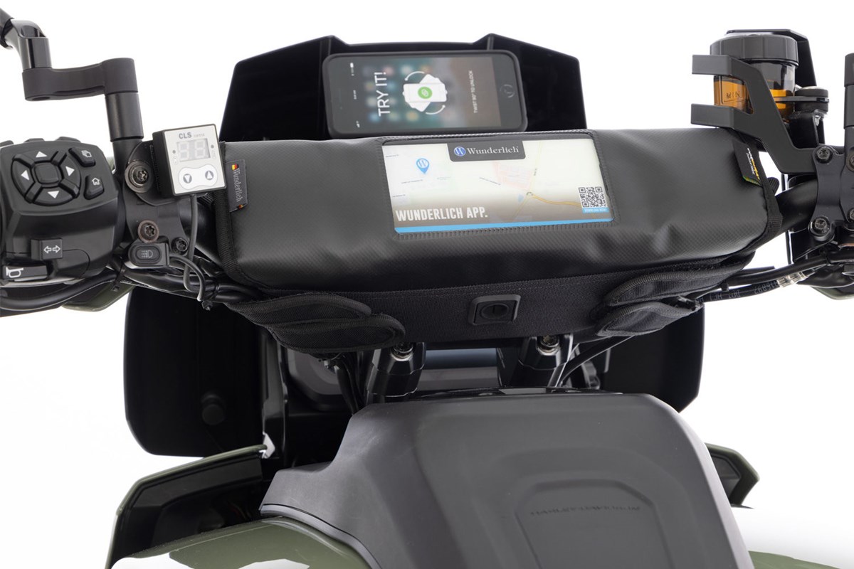 Funktionelle Lenkertasche für alles, was schnell zur Hand sein muss, aber auch bestens geschützt sein sollte - mit praktischem Sichtfenster zur Bedienung von Multimedia-Geräten.