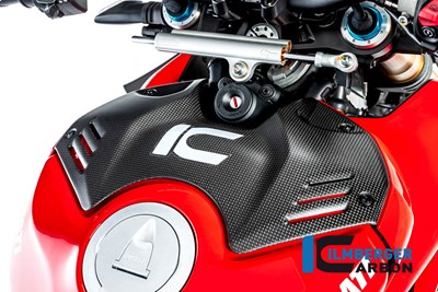 Die vordere Tankabdeckung in mattem Finish aus Carbon für die Ducati V4 Streetfighter ersetzt das originale Bauteil unter Verwendung der originalen Befestigungspunkte.