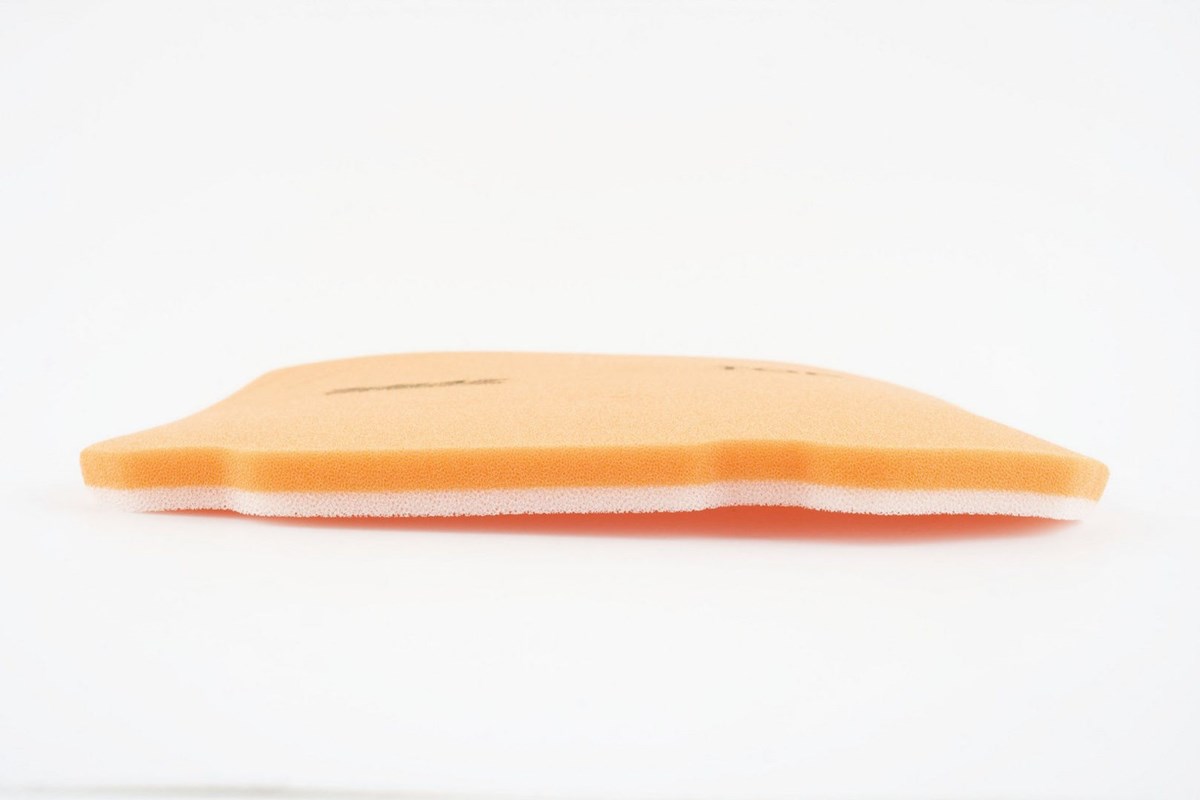 Vor über 40 Jahren bewiesen die sandigen, kiesigen Böden in den Niederlanden - und die daraus resultierenden Motorausfälle -, dass Einschaum- und Papierfilter den Fahrern zwar einen guten Luftstrom boten, aber beim Schutz versagten. Das bahnbrechende, verschmolzene Zweischichtdesign von Twin Air (das heute vielfach kopiert wird) kombiniert Leistung und Schutz. Die verschmolzenen Schichten aus offenporigem Schaumstoff und feinem Innenschaum halten selbst die kleinsten Partikel zurück. Das neue, rundere Design verbessert die Luftzirkulation. Das gilt auch für die minimierten Nähte, die durch ein revolutionäres Mikroklebeverfahren ermöglicht werden: Kürzere Nähte = mehr Schaumstoff = mehr Durchfluss.