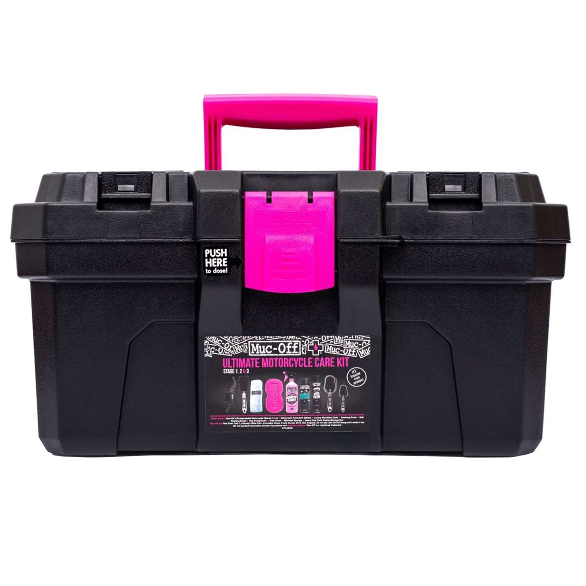 Das Motorrad Kit ist die ultimative Waffe im Kampf gegen den Schmutz. Das als Werkzeugkiste getarnte Reinigungsset ist eine umfassende Komposition von Muc-Off Produkten zur Reiniung und Pflege des Motorrads. Die Kiste lässt sich sicher und einfach in der Werkstatt oder Garage verstauen oder einfach als Werkzeugkiste verwenden.