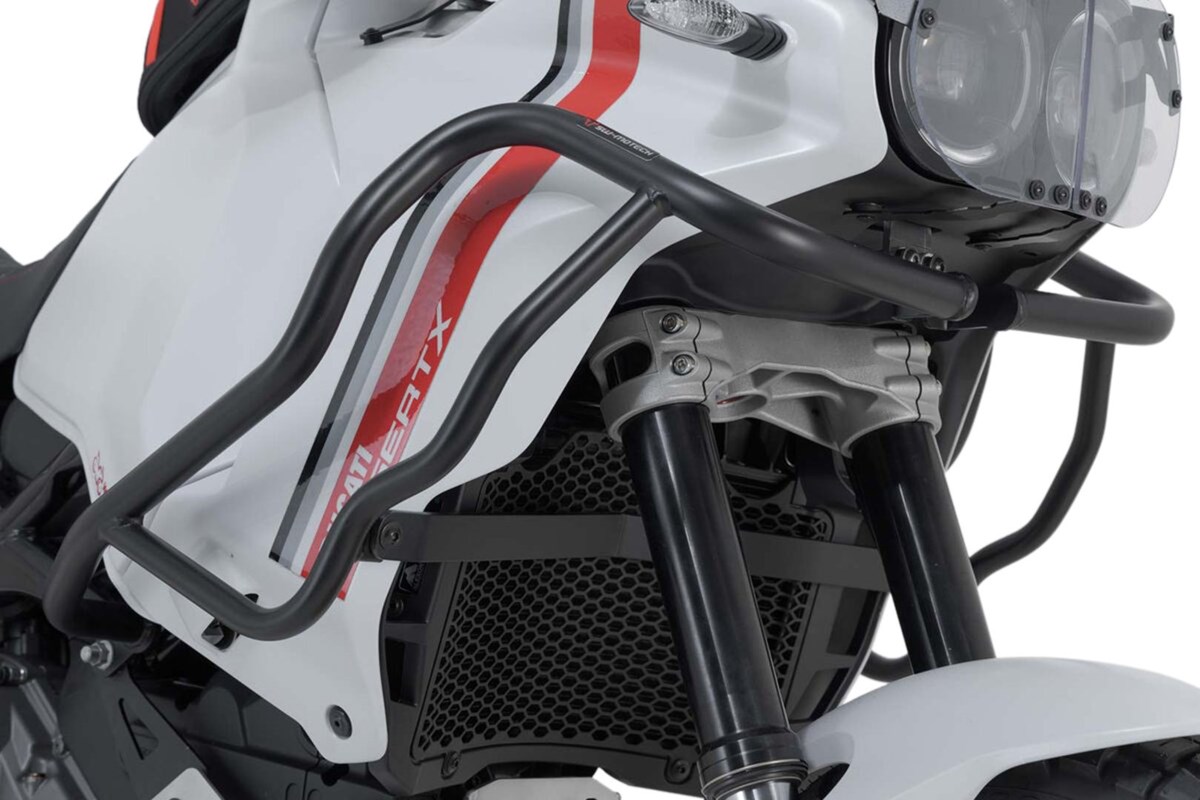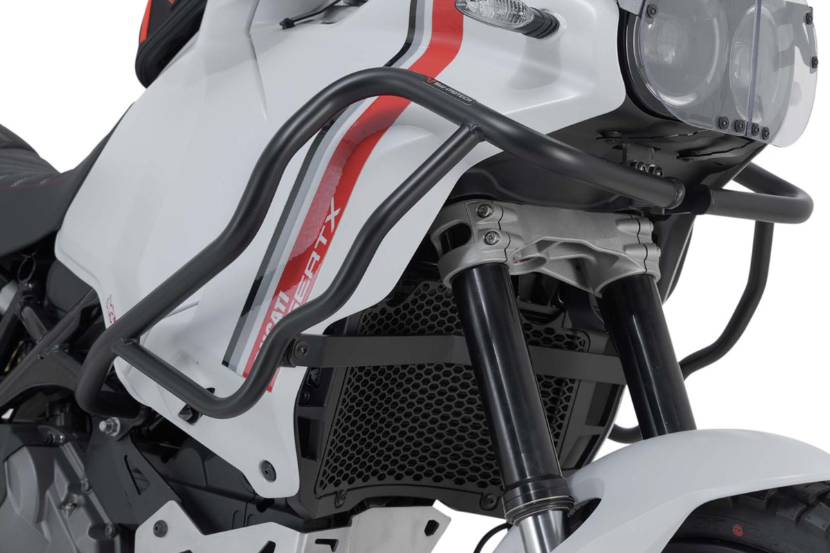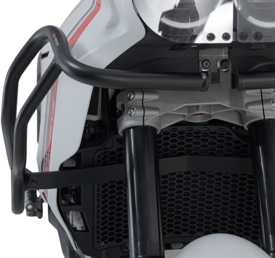 Passend zum Motorradmodell werden die Sturzbügel mit witterungs- und korrosionsbeständiger Pulverbeschichtung in Schwarz angeboten. Die Oberflächenveredelung erfolgt in einer hochmodernen Anlage im SW-MOTECH Werk im tschechischen Brünn.