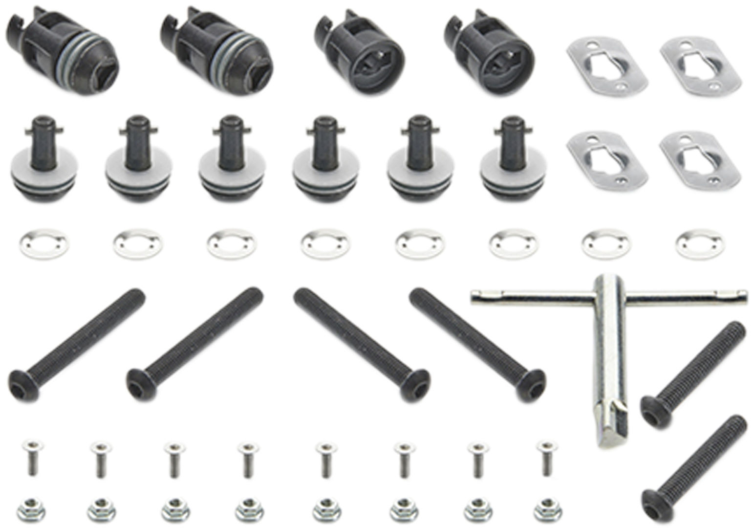 RAPID RELEASE-Umbausatz, der es ermöglicht, den Seitenkofferträger in einen Rapid Release Seitenkofferträger umzuwandeln