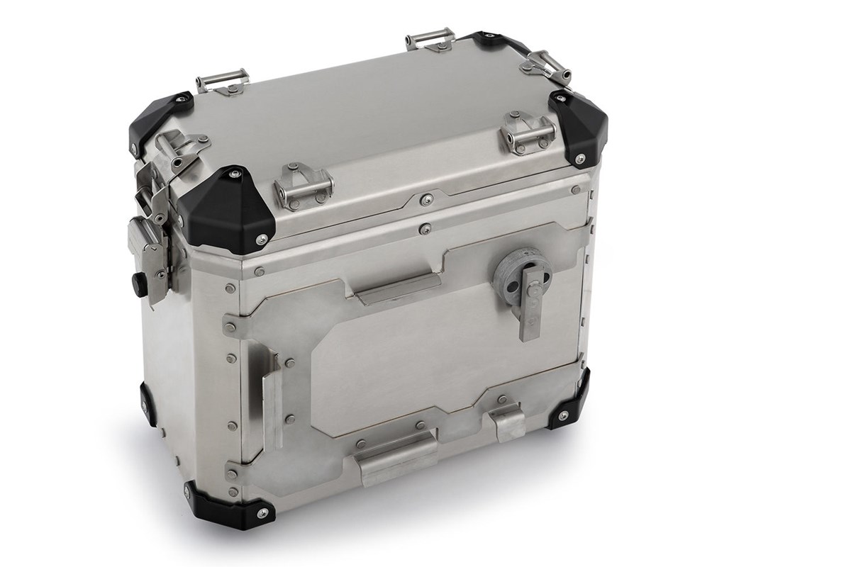 Unsere stabilen, leichten und dabei stilsicheren Aluminium-Koffer EXTREME slimline gehen mit Ihnen durch dick und dünn! Das Anbringen am Träger ist dank des Schnellverschlusssystems unkompliziert. Sie sind durch ihr spezielles Dichtsystem absolut staub- und wasserdicht. Durch die konsequente Verwendung ausschließlich hochwertiger Werkstoffe ist die Langlebigkeit unseres Gepäcksystems „EXTREME“ gewährleistet. Dazu trägt das verarbeitete 1,5 mm-Aluminiumblech mit stabilisierenden Sicken (gewichtsoptimiert, dennoch robust), die Edelstahlbeschläge und der austauschbare Rundumschutz an allen Ecken bei.