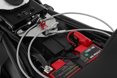 Die wohl sicherste und einfach zu handhabende Helm-Sicherung. Die robuste Basis unserer Helm Diebstahlsicherung aus Aluminium wird unter der Sitzbank sicher befestigt. Die Länge des Seils ist so bemessen, dass bis zu zwei Helme gesichert werden können. Das Drahtseil hat einen Durchmesser von 4 mm. Die solide ausgelegten Kauschen der Seilenden werden in die Einhängevorrichtung der Haltebasis eingehängt und durch einen federunterstützten Riegel sicher fixiert. Er wird zusätzlich von der montierten und abgeschlossenen Sitzbank gesichert. Damit ist es unmöglich, die Schlaufen ohne anheben der Sitzbank zu öffnen. Dieses Sicherungsmerkmal finden Sie nur bei uns. Ein weiterer Vorteil ist, dass kein zusätzliches Schloss erforderlich ist und man keinen weiteren Schlüssel mit sich führen muss. Die transparente, großzügig dimensionierte Ummantelung des Sicherungsseils aus Silikon schont Helme wie Motorrad vor Scheuerstellen und Lackschäden. Das Seil wird bei Nichtgebrauch -stets griffbereit- platzsparend unter der Sitzbank verstaut. Unsere HELM-LOCK Diebstahlsicherung ist einfach in der Anwendung und enorm hilfreich, so dass Sie diese nicht mehr missen möchten.
