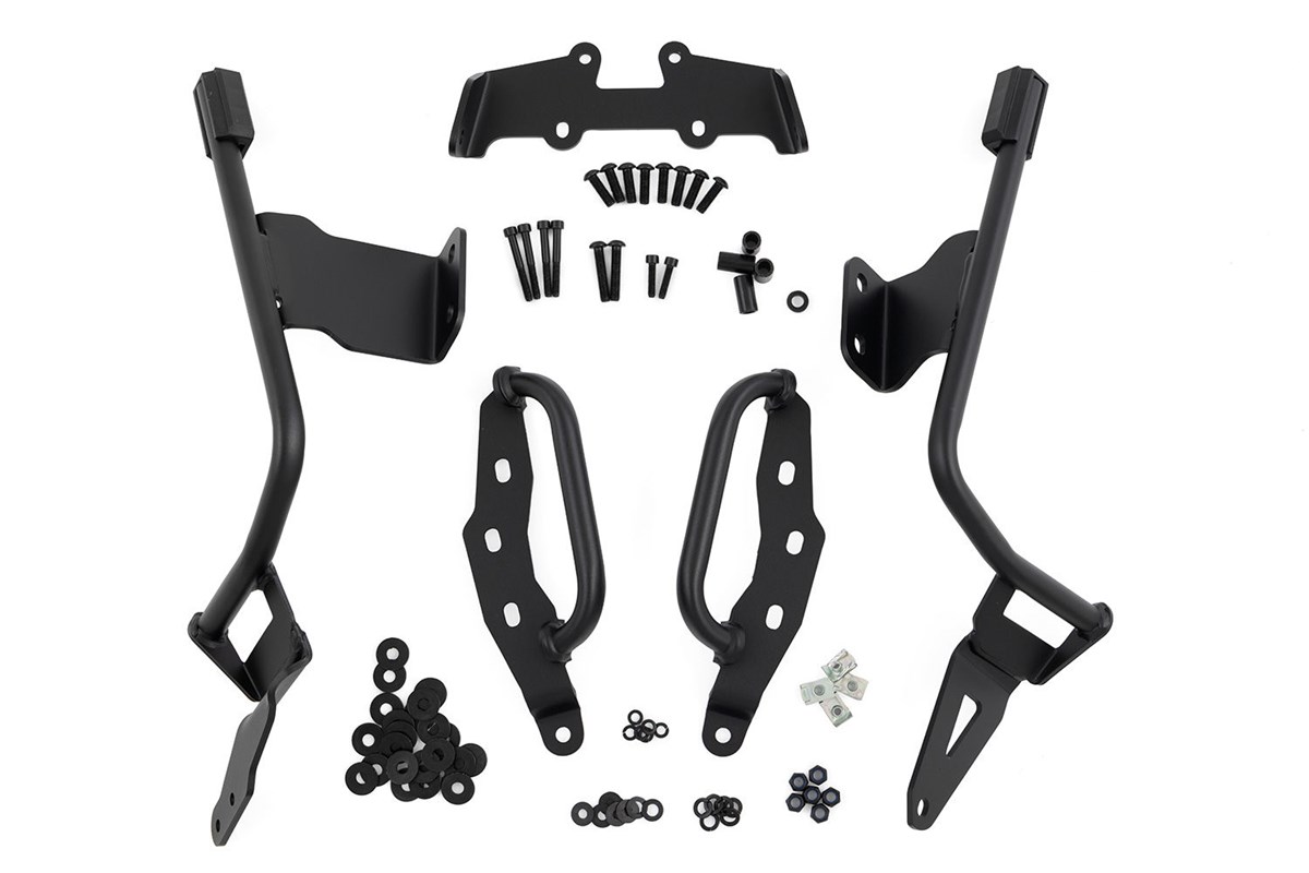 Der X-Rack light Kofferträger dient der Aufnahme der X-BAGs X32 Softgepäcktaschen. Ohne die Taschen fügt sich L-förmige Träger dezent, fast verborgen in die Seitenlinie des Bikes ein. Mit montierten X-BAGs bleibt er vollends verborgen.