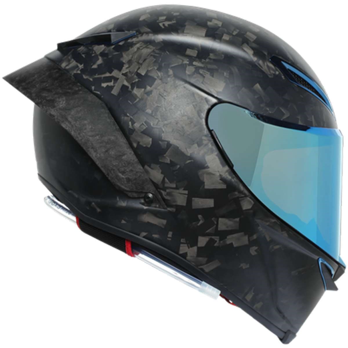 Jedes Detail ist auf absolute Leistung ausgelegt. Die Schale aus 100 % Extreme Carbon-Carbonfaser garantiert eine extreme Leichtigkeit, damit man beim Tragen niemals ein Schweregefühl spürt. Seine Formen und die Lüftungsschlitze aus Metall wurden im Windkanal analysiert und von den AGV-Athleten getestet, um – auch dank dem innovativen Profil des hinteren PRO-Spoilers – die beste aerodynamische Durchdringung und maximale Stabilität bei hohen Geschwindigkeiten zu erzielen. Das Ultravision-Visier der optischen Klasse 1 ist dank einer Stärke von bis zu 5 mm wesentlicher Bestandteil des Schutzes und ermöglicht eine Panoramasicht von 190° sowie ein vertikales Sichtfeld von 85°. Dies bedeutet, die Rennstrecke, die Gegner und die Hindernisse deutlicher und vor allen anderen zu sehen. Auch in Rennposition.