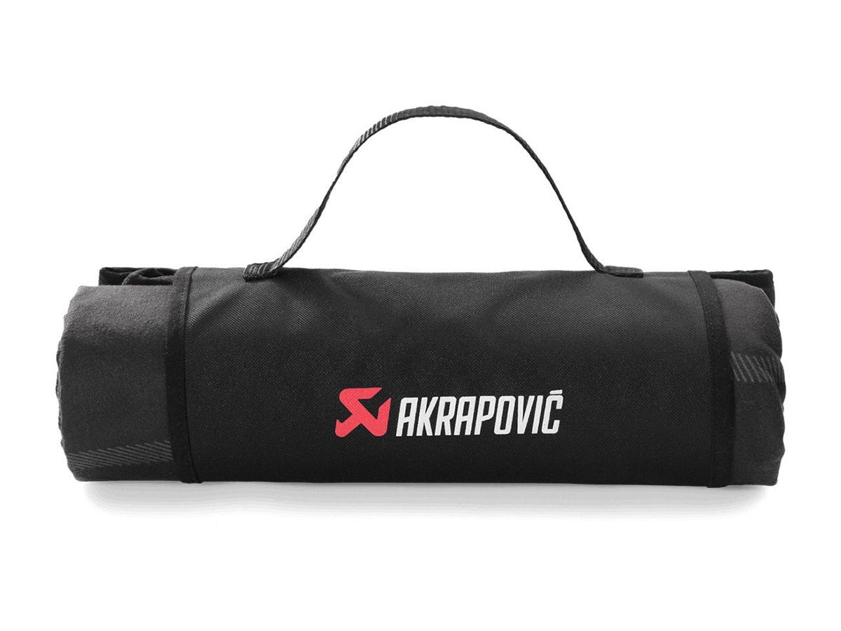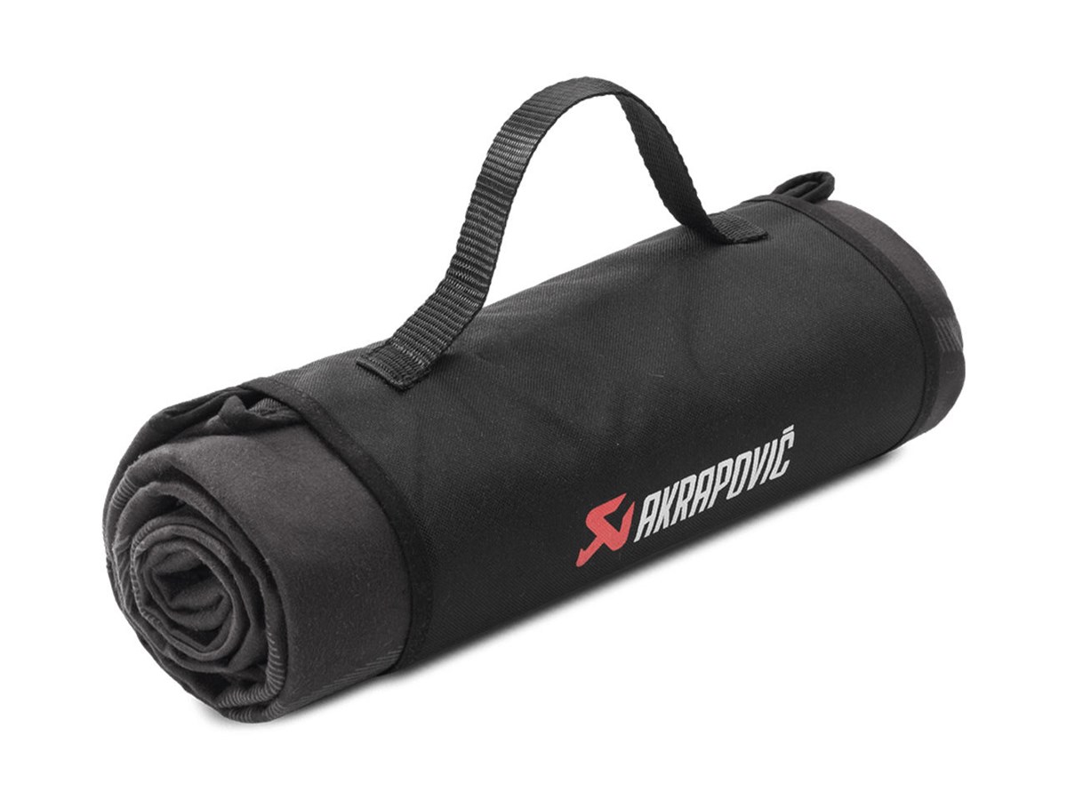 Diese stilvolle, bequeme und praktische Decke ist ideal für ein Picknick, einen Tag auf der Rennbahn, zum Entspannen am Strand oder für eine Auszeit auf einer Reise. Das Obermaterial aus durchgefärbtem Polarfleece ist mit dem Akrapovic-Logo versehen, und die Basisschicht aus 600D-Polyester hat eine Wassersäule von bis zu 2.000 mm. Sie lässt sich mit einem Klettverschluss zusammenrollen und in ihrer eigenen Tasche verstauen.
