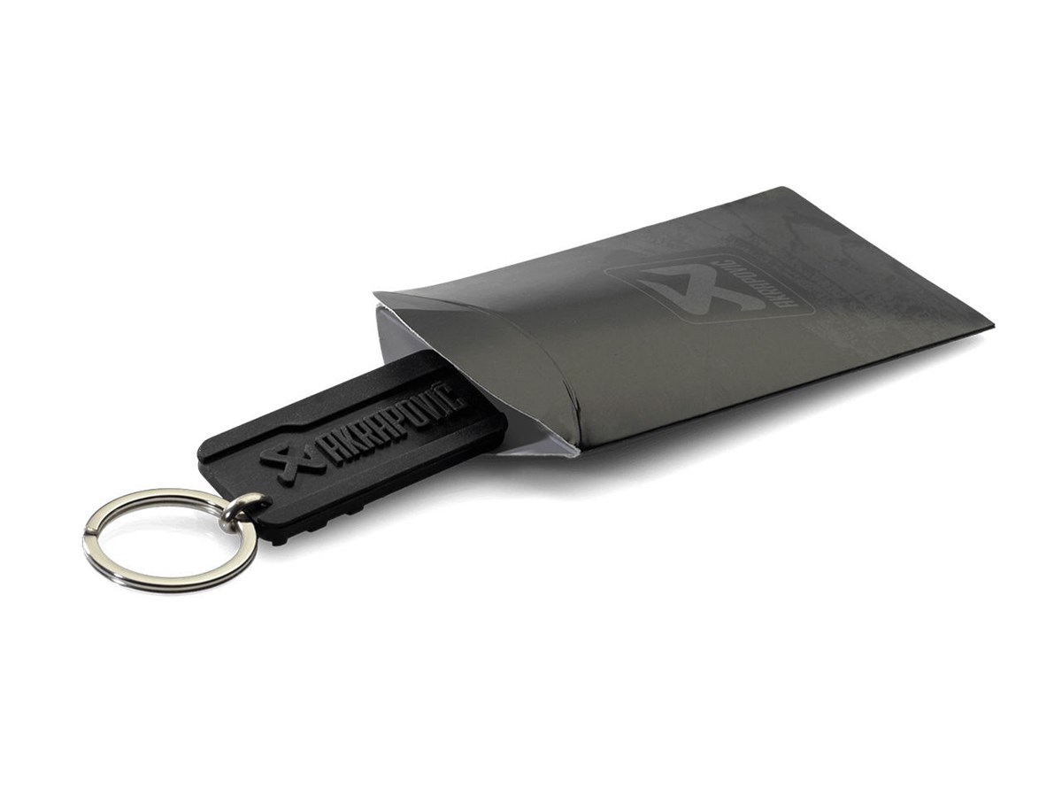 Dieser langlebige Schlüsselanhänger zeigt das Rock'n'Roar-Logo auf einer Seite der Silikon-Gummilasche und das Akrapovic-Logo auf der anderen Seite. Rutschfestes Material für einfache Verwendung bei nassem Wetter und eine starke Metallschlaufe halten die Schlüssel sicher befestigt. Es wird in Slowenien hergestellt und verwendet das gleiche Material, das auch für den Schutz der Auspufffedern verwendet wird.