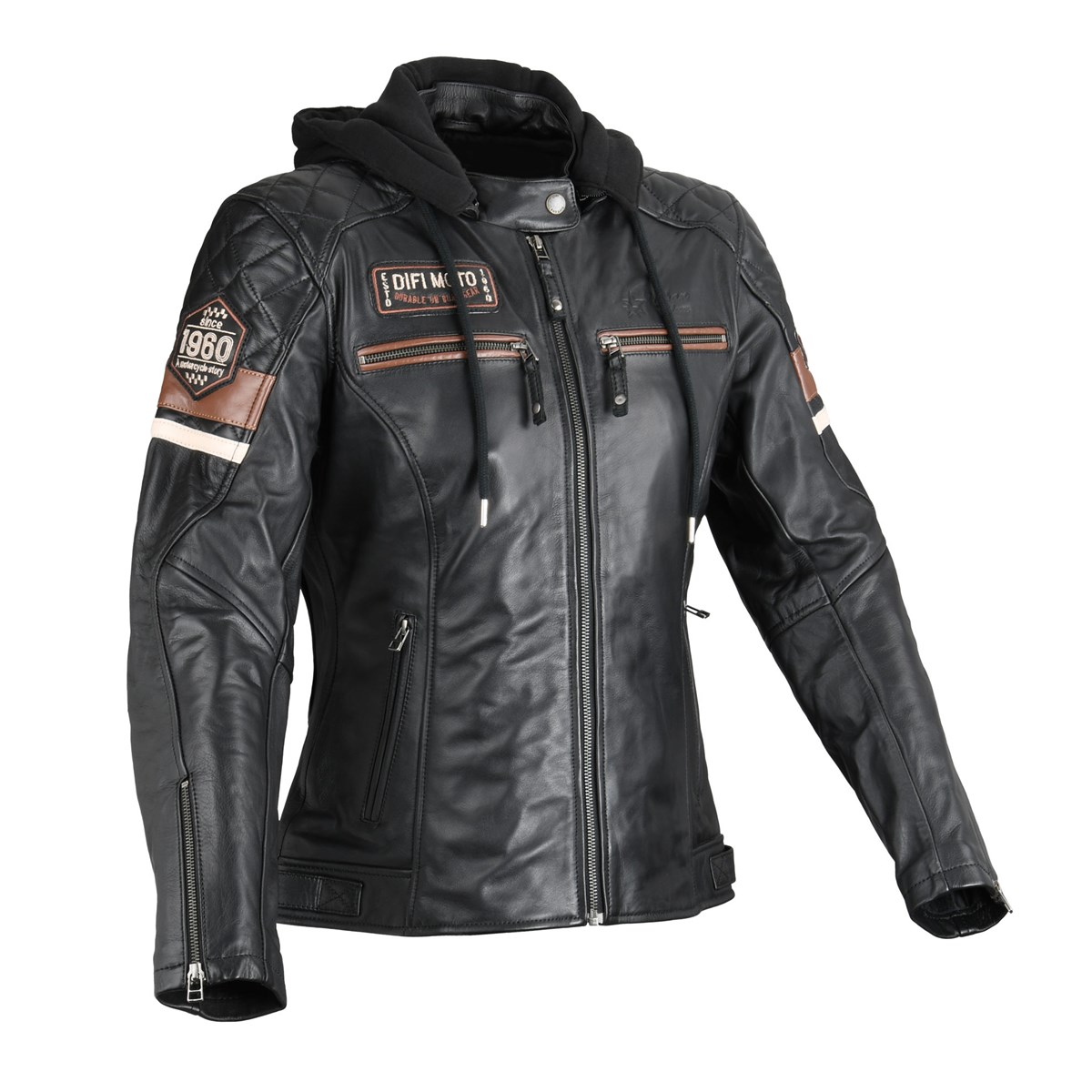 Stylische Retro-Motorradjacke für Damen aus hochwertigem, super geschmeidigen Rindsleder.