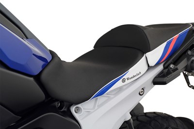 Den Style dieser AKTIVKOMFORT Sitzbank haben wir auf die BMW R 1300 GS Trophy abgestimmt. Die Sitzflanke ist dafür partiell in dynamischem Blau und Weiß bezogen bildet den Link zu den gleichfarbigen Felgen.