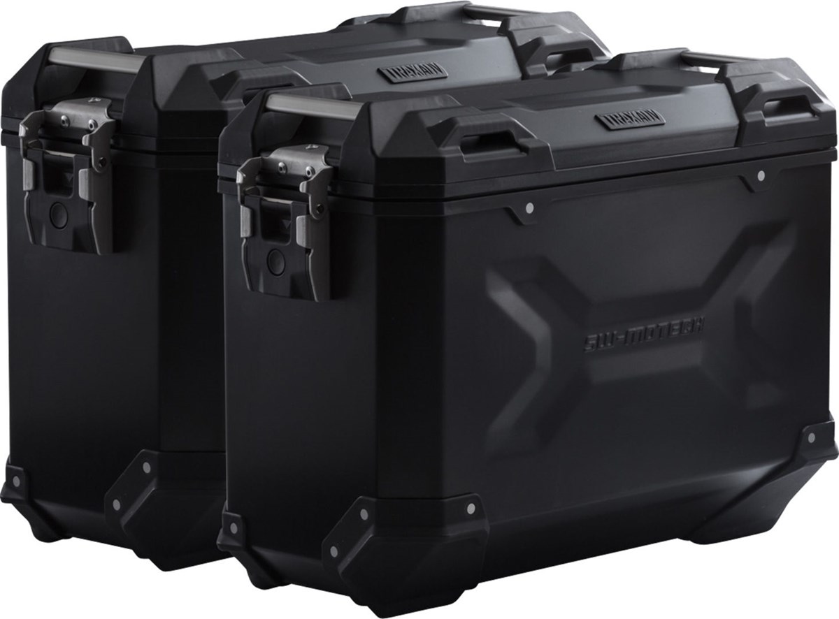 Die robusten TRAX ADV Alukoffer fühlen sich auf jeder Strecke zuhause: Designprägungen unterstützen die Stabilität des 1,5 Millimeter starken, geschweissten Aluminium-Wandmaterials. Ein komplett abnehmbarer Deckel mit Tragegriffen aus eloxiertem Aluminium und Schnellverschlüssen erleichtert Be- und Entladen der Motorradkoffer, die abgeschrägte Seitenkante gibt hohe Bodenfreiheit bei der Kurvenfahrt. Mit dieser Komplettlösung hast du alle benötigten Komponenten, um direkt mit TRAX auf grosse Reise zu gehen: Zwei wasserdichte TRAX ADV Seitenkoffer, zwei abnehmbare SW-MOTECH Seitenträger, Adapterkit, Schloss-Satz, Öffnungsbegrenzer und Diebstahlsicherung zum attraktiven Gesamtpreis. Die modellspezifischen Träger und die Grösse der Koffer sind perfekt auf Heckgeometrie und Auspuffanlage des Motorrades abgestimmt.
