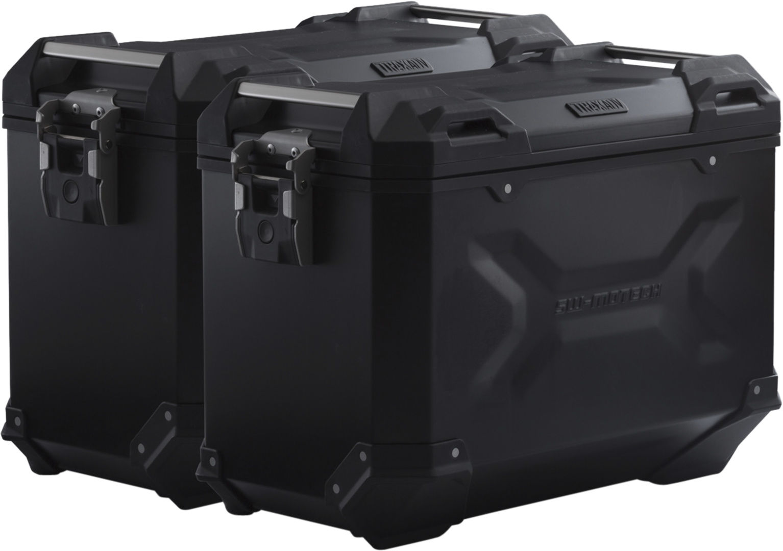 Die robusten TRAX ADV Alukoffer fühlen sich auf jeder Strecke zuhause: Designprägungen unterstützen die Stabilität des 1,5 Millimeter starken, geschweissten Aluminium-Wandmaterials. Ein komplett abnehmbarer Deckel mit Tragegriffen aus eloxiertem Aluminium und Schnellverschlüssen erleichtert Be- und Entladen der Motorradkoffer, die abgeschrägte Seitenkante gibt hohe Bodenfreiheit bei der Kurvenfahrt. Mit dieser Komplettlösung hast du alle benötigten Komponenten, um direkt mit TRAX auf grosse Reise zu gehen: Zwei wasserdichte TRAX ADV Seitenkoffer, zwei abnehmbare SW-MOTECH Seitenträger, Adapterkit, Schloss-Satz, Öffnungsbegrenzer und Diebstahlsicherung zum attraktiven Gesamtpreis. Die modellspezifischen Träger und die Grösse der Koffer sind perfekt auf Heckgeometrie und Auspuffanlage des Motorrades abgestimmt.