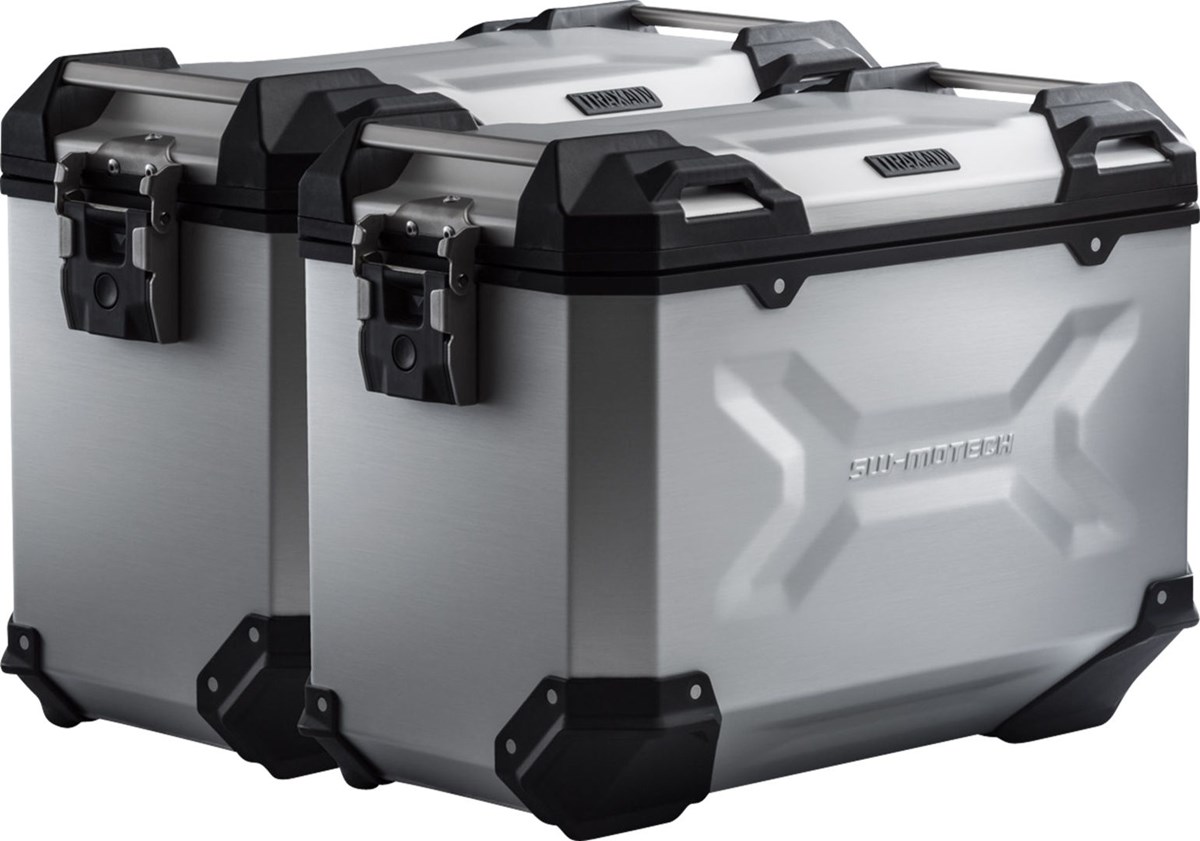 Die robusten TRAX ADV Alukoffer fühlen sich auf jeder Strecke zuhause: Designprägungen unterstützen die Stabilität des 1,5 Millimeter starken, geschweissten Aluminium-Wandmaterials. Ein komplett abnehmbarer Deckel mit Tragegriffen aus eloxiertem Aluminium und Schnellverschlüssen erleichtert Be- und Entladen der Motorradkoffer, die abgeschrägte Seitenkante gibt hohe Bodenfreiheit bei der Kurvenfahrt. Mit dieser Komplettlösung hast du alle benötigten Komponenten, um direkt mit TRAX auf grosse Reise zu gehen: Zwei wasserdichte TRAX ADV Seitenkoffer, zwei abnehmbare SW-MOTECH Seitenträger, Adapterkit, Schloss-Satz, Öffnungsbegrenzer und Diebstahlsicherung zum attraktiven Gesamtpreis. Die modellspezifischen Träger und die Grösse der Koffer sind perfekt auf Heckgeometrie und Auspuffanlage des Motorrades abgestimmt.