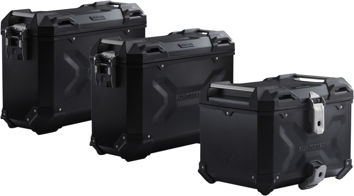 Dieses Set ist das Rund-um-Sorglos-Paket für jede Tour. Die wasser- und staubdichten TRAX ADV Premium-Alukoffer, zwei Seitenkoffer und ein Topcase, bieten deinem Gepäck besten Schutz. Die modellspezifische Entwicklung des abnehmbaren PRO Seitenträgers und des ADVENTURE-RACK Gepäckträgers garantieren beste Passform und den sicheren Halt der Alukoffer.