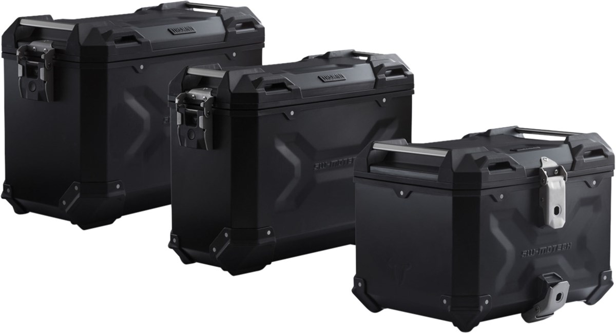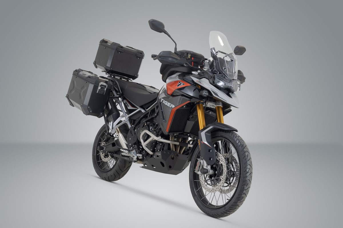 Dieses Set ist das Rund-um-Sorglos-Paket für jede Tour. Die wasser- und staubdichten TRAX ADV Premium-Alukoffer, zwei Seitenkoffer und ein Topcase, bieten deinem Gepäck besten Schutz. Die modellspezifische Entwicklung des abnehmbaren PRO Seitenträgers und des ADVENTURE-RACK Gepäckträgers garantieren beste Passform und den sicheren Halt der Alukoffer.