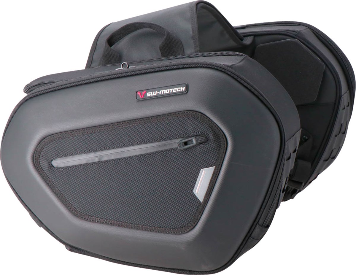 Die PRO BLAZE Satteltaschen mit abnehmbaren Abstandsbügeln bestechen durch sportliche Optik, geringes Gewicht und ein cleveres Befestigungssystem. SW-MOTECH fertigt die Taschen aus robustem und besonders UV beständigem 1680D Ballistic Nylon. In Verbindung mit Seitenwänden aus formstabilem EVA-Material wird das Gepäck vor Spritzwasser und Staub geschützt. Gezielt entwickelt für sportliche Motorräder beeinträchtigen die Satteltaschen die Fahreigenschaften nur minimal. Wer ohne Gepäck unterwegs ist, kann die Abstandsbügel mit einem Handgriff abnehmen und an der Maschine verbleiben nur unauffällige Halterungen.