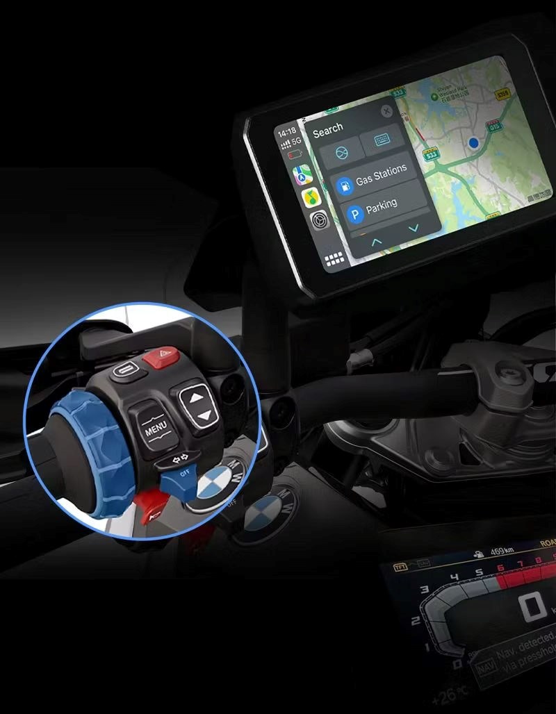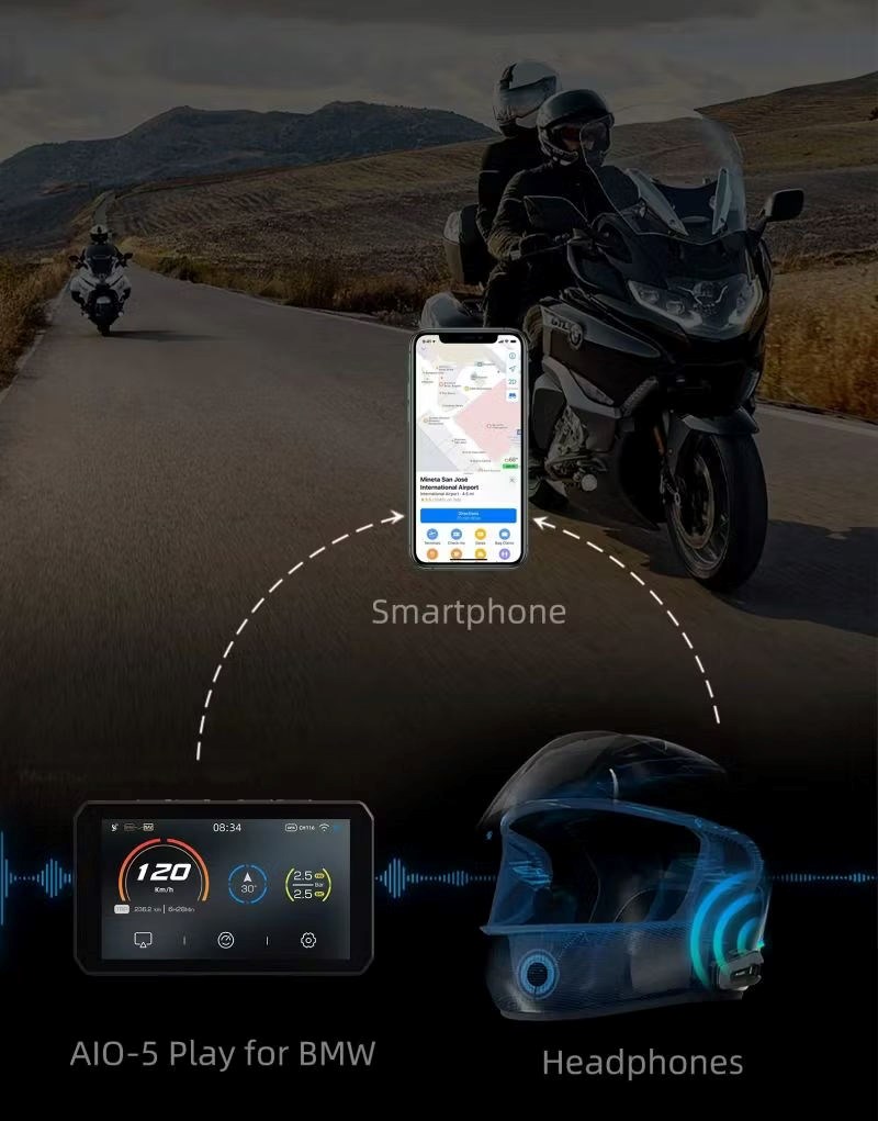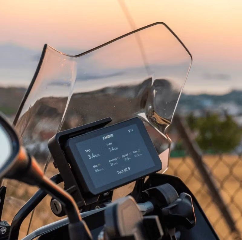 Das Chigee AIO-5 Play BMW 5 Inch Smart Riding System wurde speziell für Motorräder entwickelt, die mit der BMW ConnectedRide Navigator Halterung ausgestattet sind. Es wird direkt an der ConnectedRide Navigator Halterung angeschlossen und über das elektrische System Ihres BMW mit Strom versorgt und kann über den Multi-Controller bedient werden. AIO-5 Play BMW ist eine ausgezeichnete Wahl für jeden Motorradfahrer, der Wert auf moderne Technologie legt. Mit seinen vielseitigen Funktionen macht es das Fahren nicht nur einfacher, sondern auch sicherer und angenehmer. Das 5-Zoll-Display des AIO-5 überzeugt durch seine hohe Auflösung und Helligkeit, sodass es selbst bei direkter Sonneneinstrahlung gut ablesbar ist. Das ergonomische Design sorgt dafür, dass das Gerät einfach am Lenker montiert werden kann, ohne den Fahrer in seiner Sicht zu beeinträchtigen. Über Bluetooth kann das System mit Smartphones verbunden werden, um Anrufe zu tätigen, Musik abzuspielen oder Navigationshinweise direkt ins Headset zu streamen. Das System protokolliert wichtige Fahrdaten wie Geschwindigkeit, zurückgelegte Strecke und Kraftstoffverbrauch, die über die App analysiert werden können. Dieses System könnte sich schnell zu einem unverzichtbaren Begleiter für alle Motorradliebhaber entwickeln. Die integrierte GPS-Funktion ermöglicht eine präzise Navigation in Echtzeit, sodass der Fahrer stets auf dem richtigen Weg bleibt. Mit seinem benutzerfreundlichen Design und den vielfältigen Funktionen bietet es alles, was man für ein optimales Fahrerlebnis benötigt. Egal ob für den täglichen Pendelverkehr oder längere Fahrten – das AIO-5 Play ist der perfekte Begleiter auf zwei Rädern.