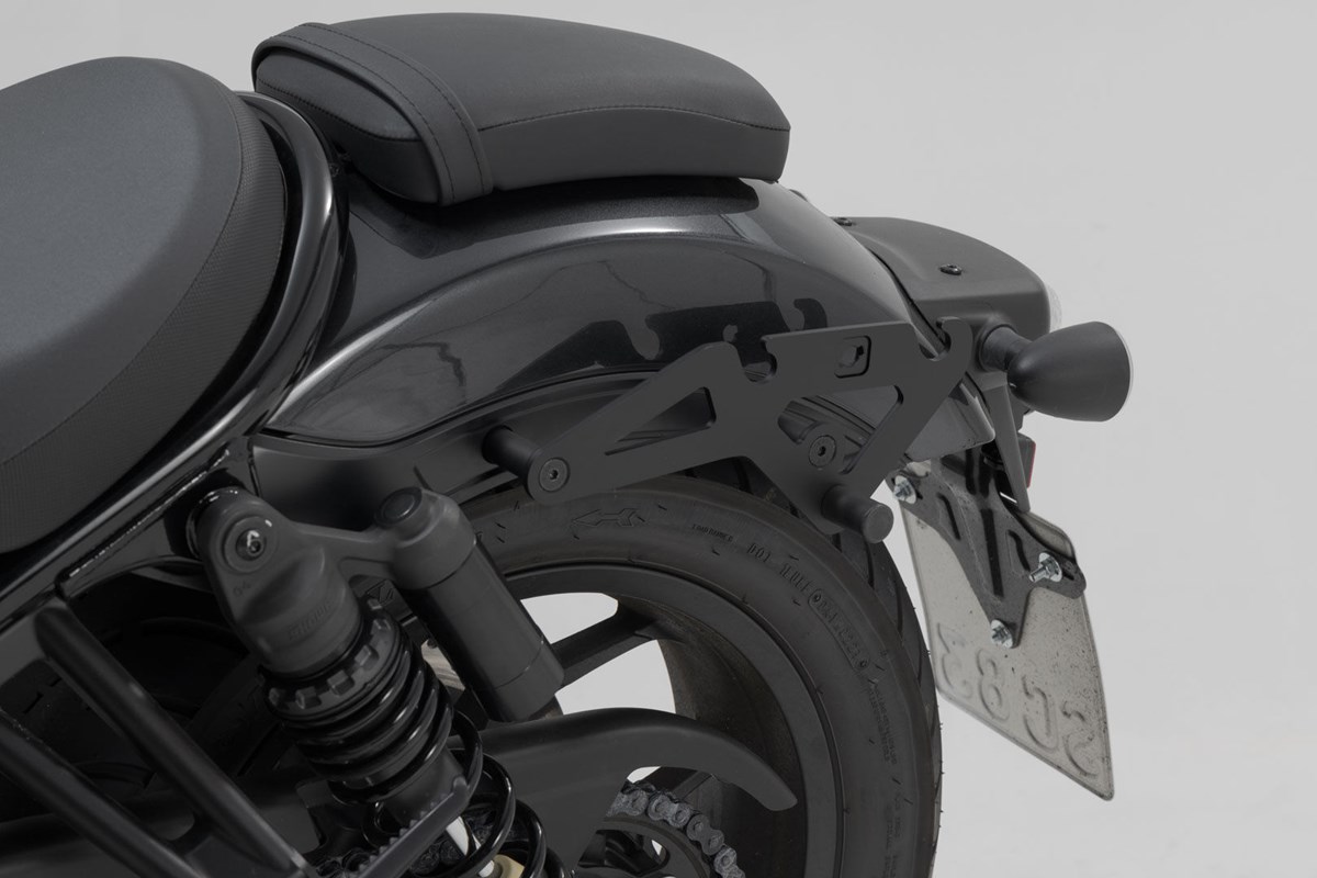 Der modellspezifische Taschenträger wird an original Anbaupunkten des Fenderstruts einfach und schnell montiert. Über ein Schnellverschluss-System lässt sich die Legend Gear Seitentasche LH mit wenigen Handgriffen anbringen und abnehmen, ohne dass der Fahrer auf eine zuverlässige Taschenbefestigung verzichten muss.