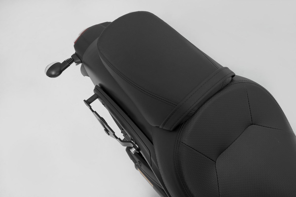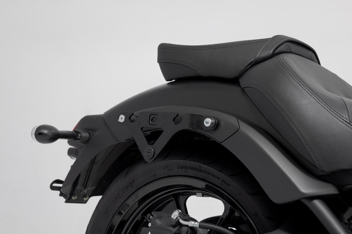 Der modellspezifische Taschenträger wird an original Anbaupunkten des Fenderstruts einfach und schnell montiert. Über ein Schnellverschluss-System lässt sich die Legend Gear Seitentasche LH mit wenigen Handgriffen anbringen und abnehmen, ohne dass der Fahrer auf eine zuverlässige Taschenbefestigung verzichten muss.