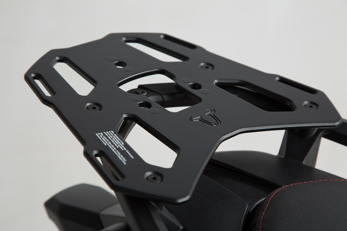 Der modellspezifische Gepäckträger und die Adapterplatte sichern den Halt des Topcases: es wird einfach aufgeschoben und mit Hilfe des abschliessbaren Spannverschlusses arretiert.