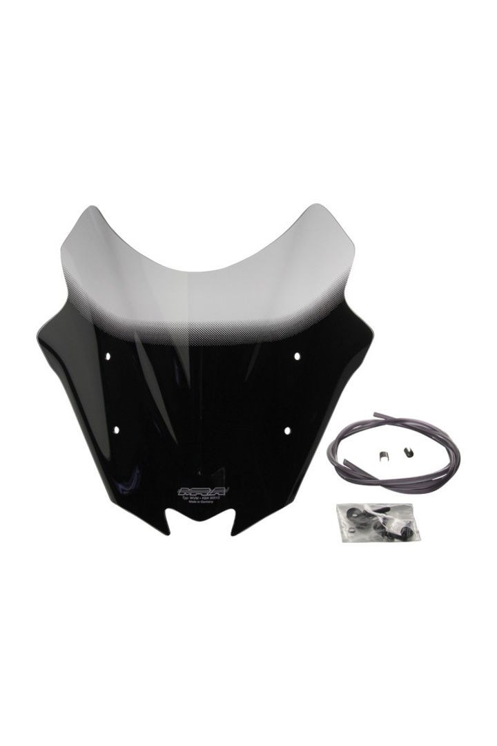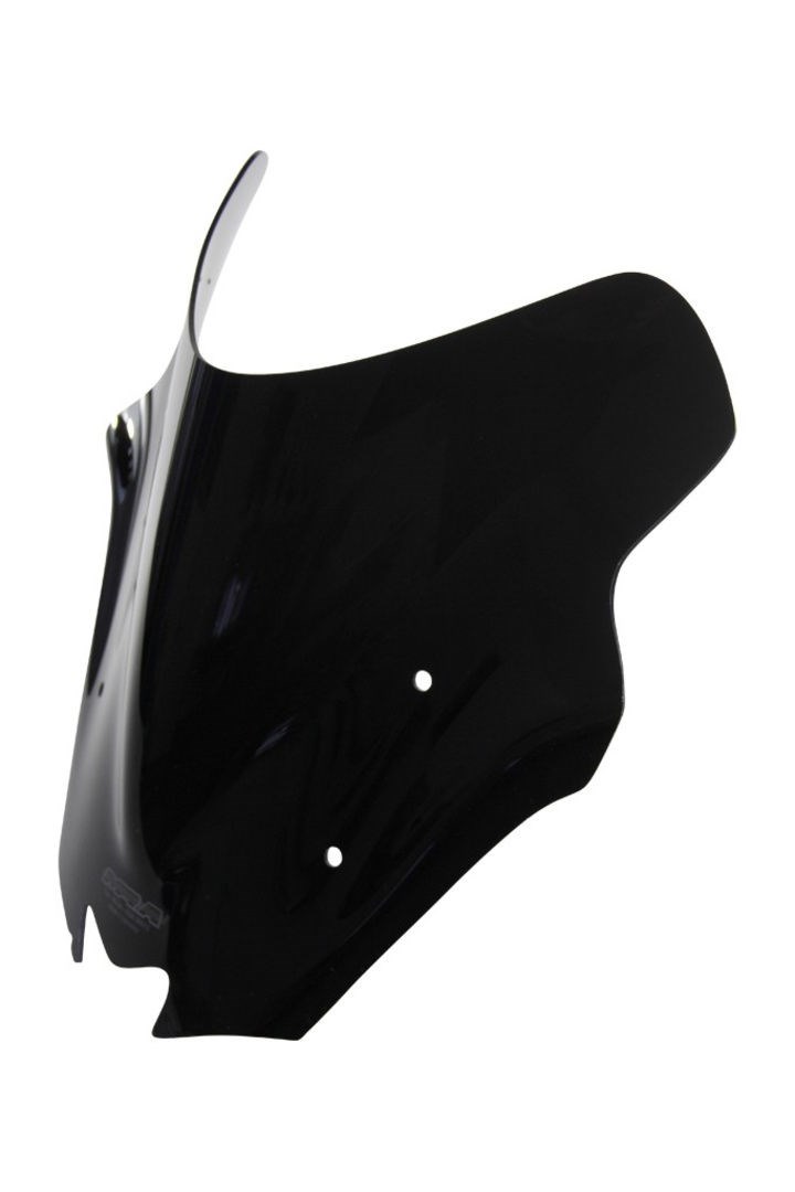 Sportliche Scheibe mit leichtem Spoiler für besseren Windschutz und perfekt zum Motorrad passendem Design.
