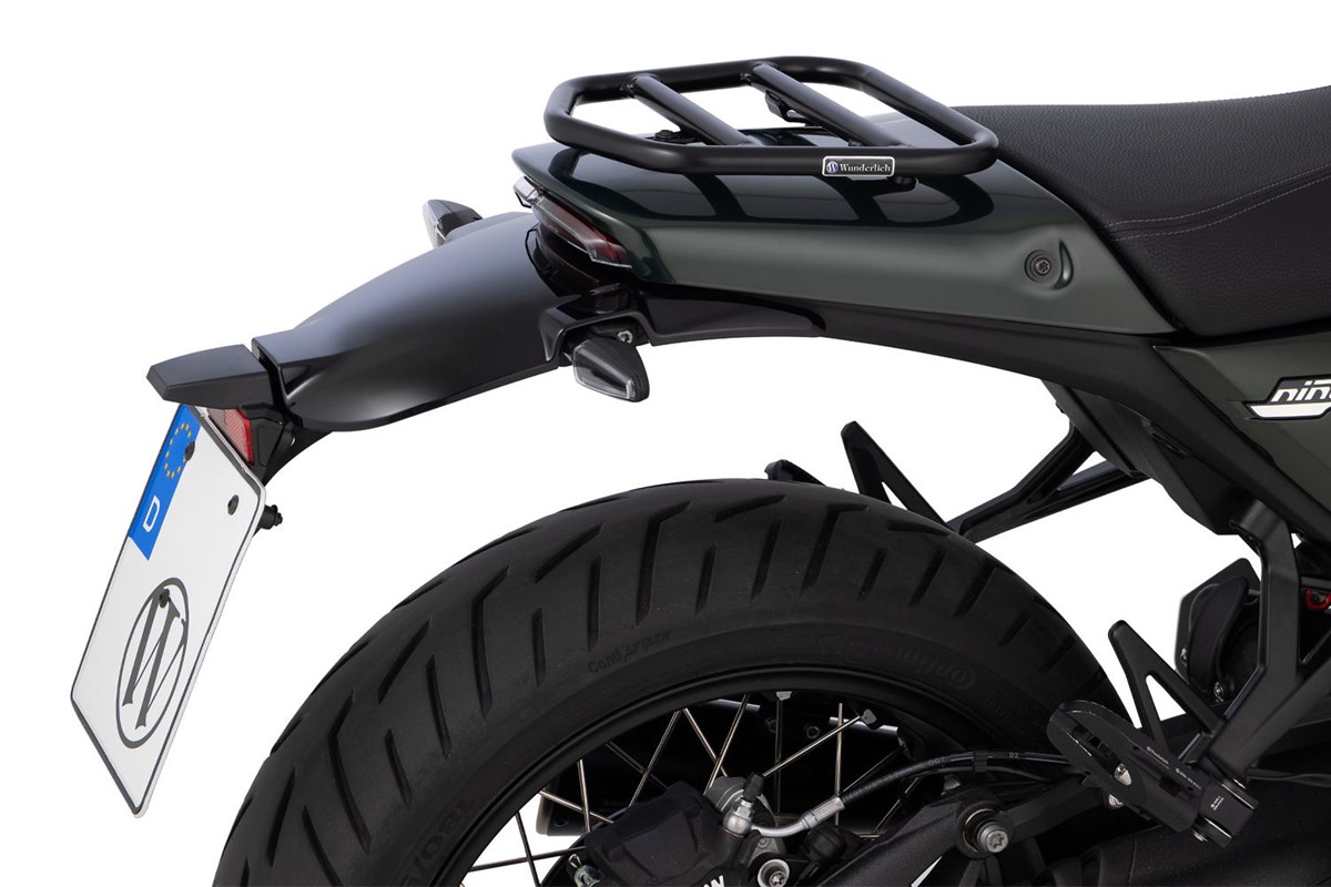 Perfekt passend fürs Customizen des Hecks: Zur Wahl stehen drei stilistisch differenzierte Kennzeichenträger: Ein fein gefräster und klassisch mittig angeordneter Wunderlich Kennzeichenträger oder die Versionen SWING oder LOW, die beide den freien Blick auf den Hinterreifen möglich machen. Passend zum Original-Farbton San Remo metallic einbaufertig lackiert.