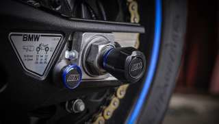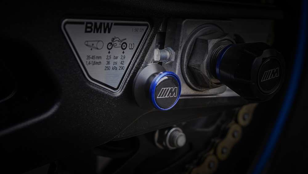 Die M Montageständeraufnahme ermöglicht die Nutzung des Montageständers Sport hinten. Die hochwertigen Schwingenadapter werden einfach hinten an der Schwinge montiert und können auch während der Fahrt am Motorrad bleiben. Mit ihrer M Optik fügen sie sich perfekt in das sportliche Renndesign des Bikes ein.