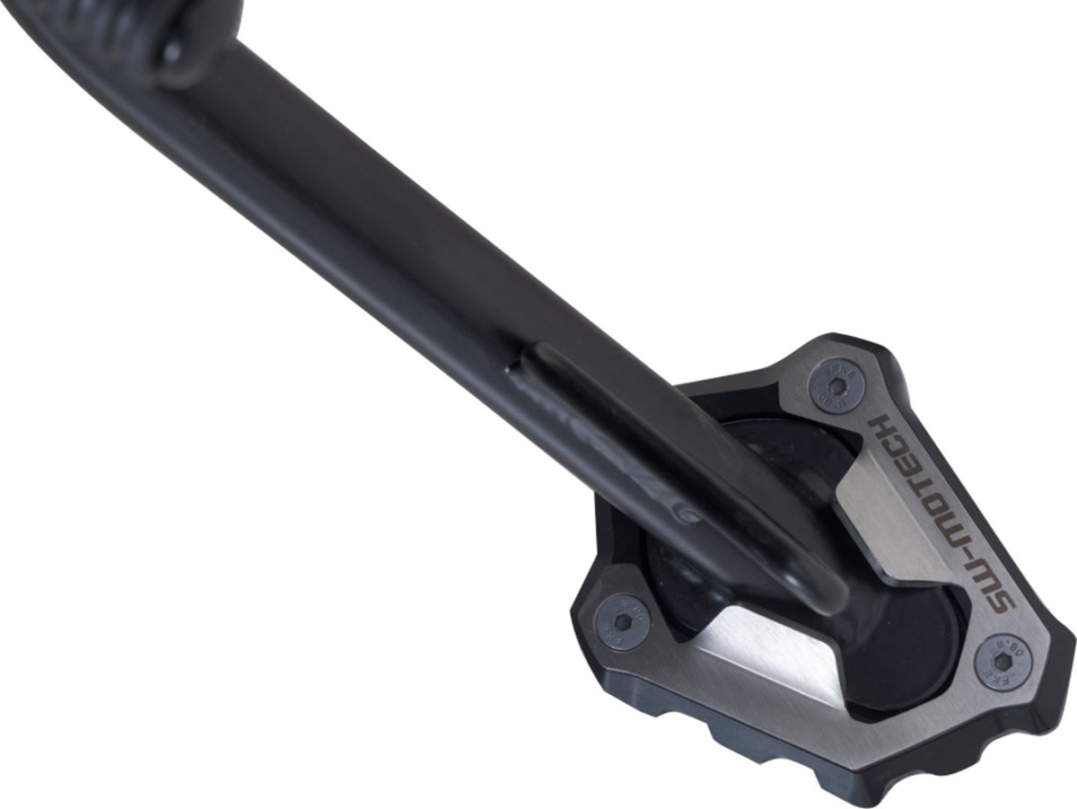 Seitenständerfuss-VerbreiterungDie grosszügige Auflagefläche der robusten Fuss-Verbreiterung bietet sicheren Stand auch auf unebenem Boden und weichem Untergrund. Passgenauigkeit und leichtes Handling im Fahralltag standen bei der Produktentwicklung gleichermassen im Fokus. Die profilierte Oberseite der Fuss-Verbreiterung erleichtert das Ausklappen des Ständers ? auch mit schweren Stiefeln.