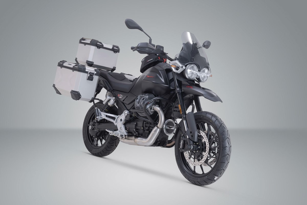 Das Adventure-Set Gepäck enthält die PRO-Seitenträger und das passende ADVENTURE-RACK. Die Seitenträger und der Gepäckträger werden an den modellspezifischen Anbaupunkten befestigt und bieten sicheren Halt für die TRAX ADV Alukoffer.