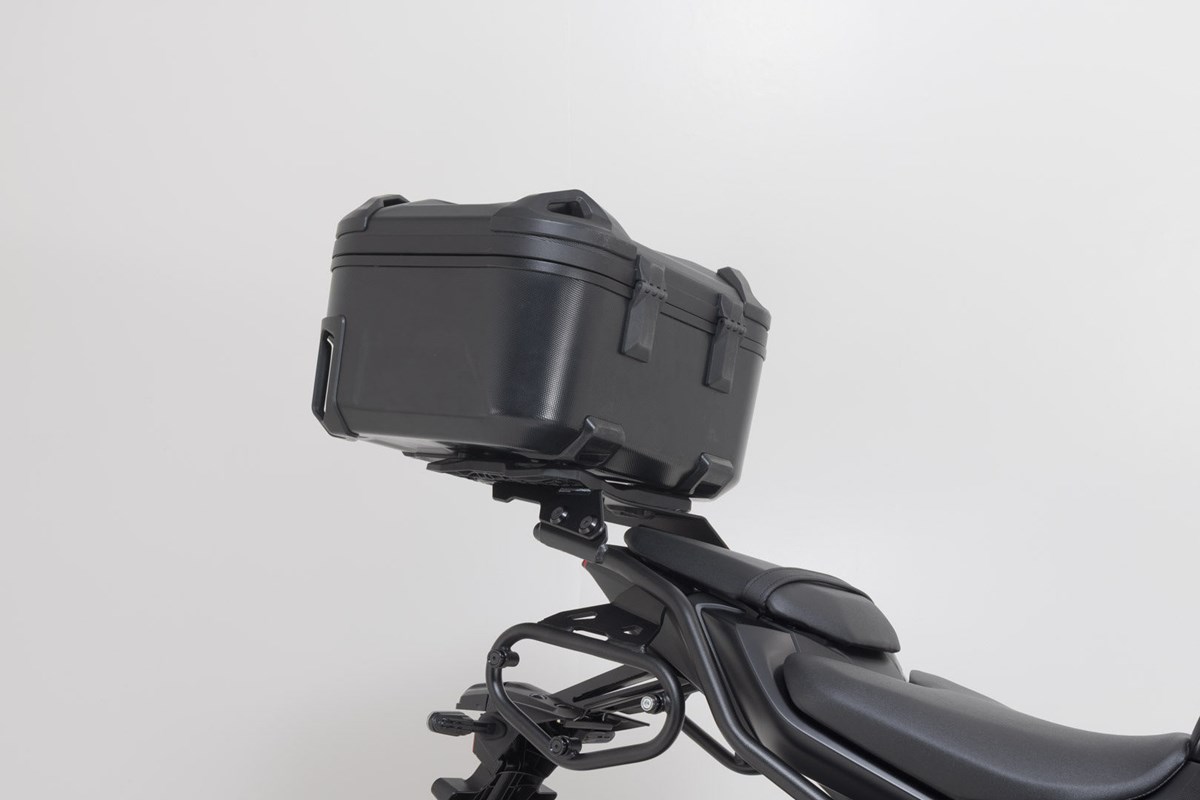 Das DUSC Topcase-System besteht aus dem robusten DUSC L Hartschalenkoffer und dem passenden STREET-RACK Gepäckträger. Ein Adapterkit und der DUSC Schloss-Satz sind ebenfalls im Lieferumfang enthalten.
