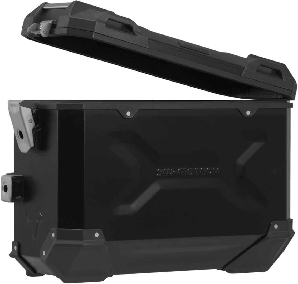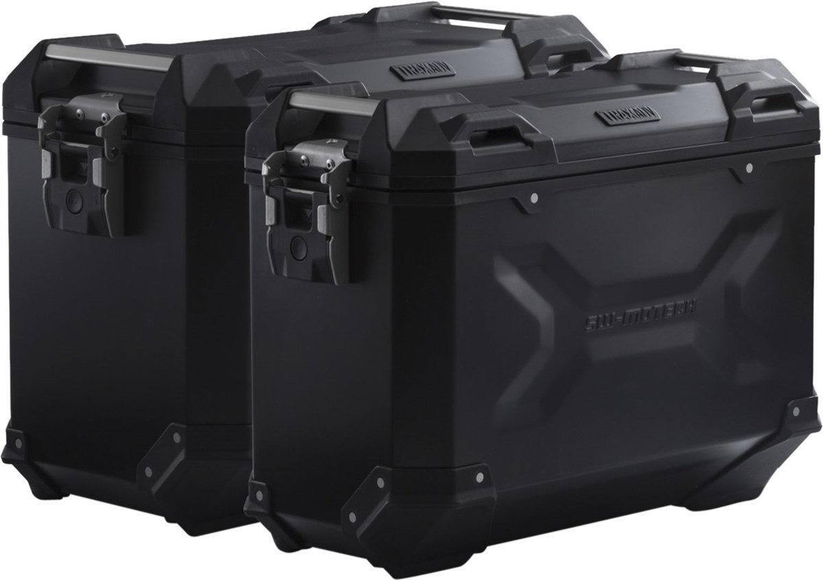 Die robusten TRAX ADV Alukoffer fühlen sich auf jeder Strecke zuhause: Designprägungen unterstützen die Stabilität des 1,5 Millimeter starken, geschweissten Aluminium-Wandmaterials. Ein komplett abnehmbarer Deckel mit Tragegriffen aus eloxiertem Aluminium und Schnellverschlüssen erleichtert Be- und Entladen der Motorradkoffer, die abgeschrägte Seitenkante gibt hohe Bodenfreiheit bei der Kurvenfahrt. Mit dieser Komplettlösung hast du alle benötigten Komponenten, um direkt mit TRAX auf grosse Reise zu gehen: Zwei wasserdichte TRAX ADV Seitenkoffer, zwei abnehmbare SW-MOTECH Seitenträger, Adapterkit, Schloss-Satz, öffnungsbegrenzer und Diebstahlsicherung zum attraktiven Gesamtpreis. Die modellspezifischen Träger und die Grösse der Koffer sind perfekt auf Heckgeometrie und Auspuffanlage des Motorrades abgestimmt.