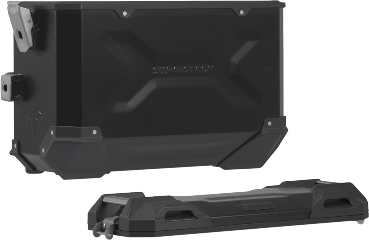 Die robusten TRAX ADV Alukoffer fühlen sich auf jeder Strecke zuhause: Designprägungen unterstützen die Stabilität des 1,5 Millimeter starken, geschweissten Aluminium-Wandmaterials. Ein komplett abnehmbarer Deckel mit Tragegriffen aus eloxiertem Aluminium und Schnellverschlüssen erleichtert Be- und Entladen der Motorradkoffer, die abgeschrägte Seitenkante gibt hohe Bodenfreiheit bei der Kurvenfahrt. Mit dieser Komplettlösung hast du alle benötigten Komponenten, um direkt mit TRAX auf grosse Reise zu gehen: Zwei wasserdichte TRAX ADV Seitenkoffer, zwei abnehmbare SW-MOTECH Seitenträger, Adapterkit, Schloss-Satz, öffnungsbegrenzer und Diebstahlsicherung zum attraktiven Gesamtpreis. Die modellspezifischen Träger und die Grösse der Koffer sind perfekt auf Heckgeometrie und Auspuffanlage des Motorrades abgestimmt.