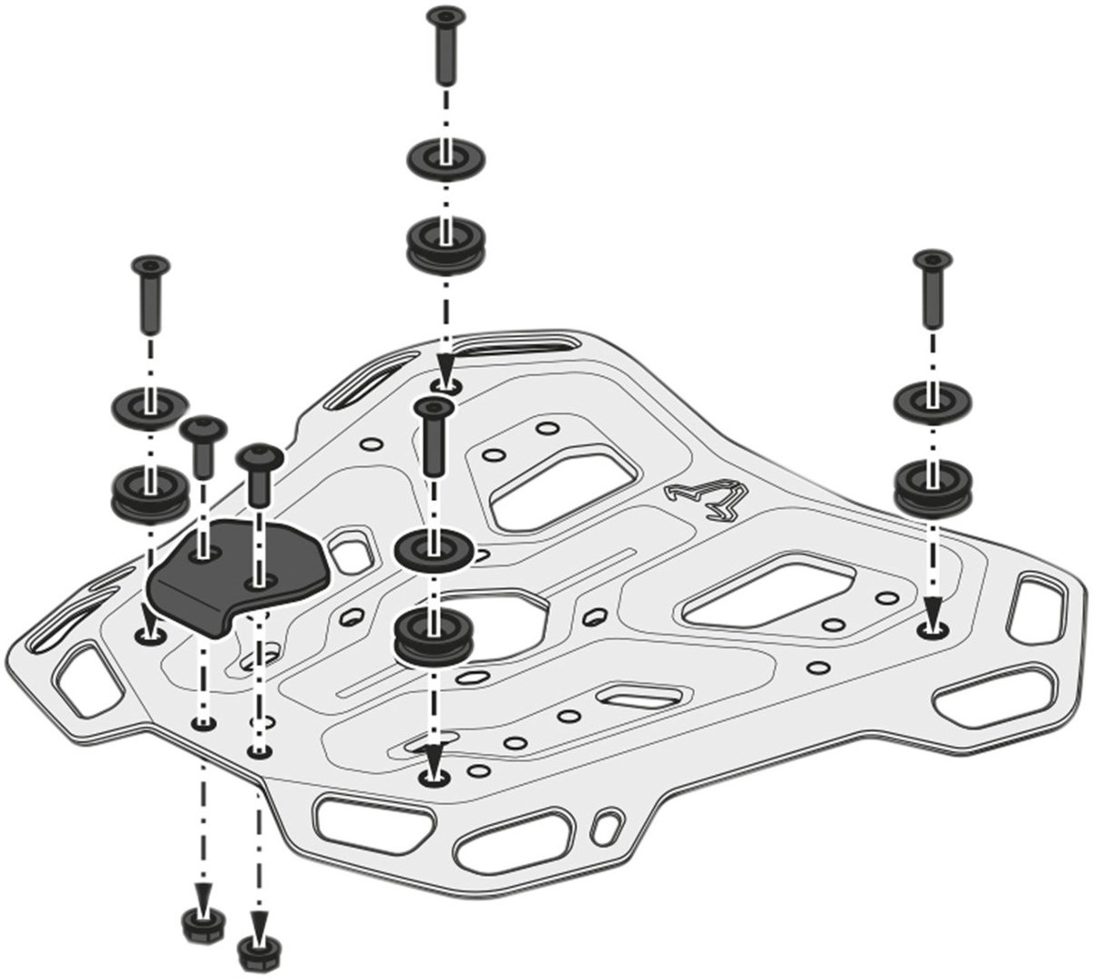 Der modellspezifische Gepäckträger und die Adapterplatte sichern den Halt des Topcases: es wird einfach aufgeschoben und mit Hilfe des abschliessbaren Spannverschlusses arretiert.