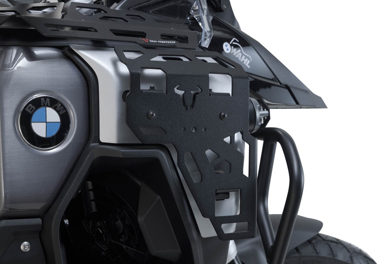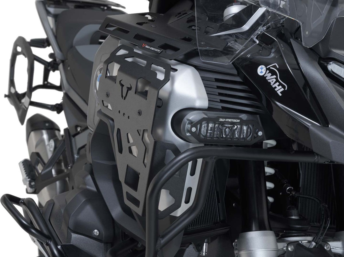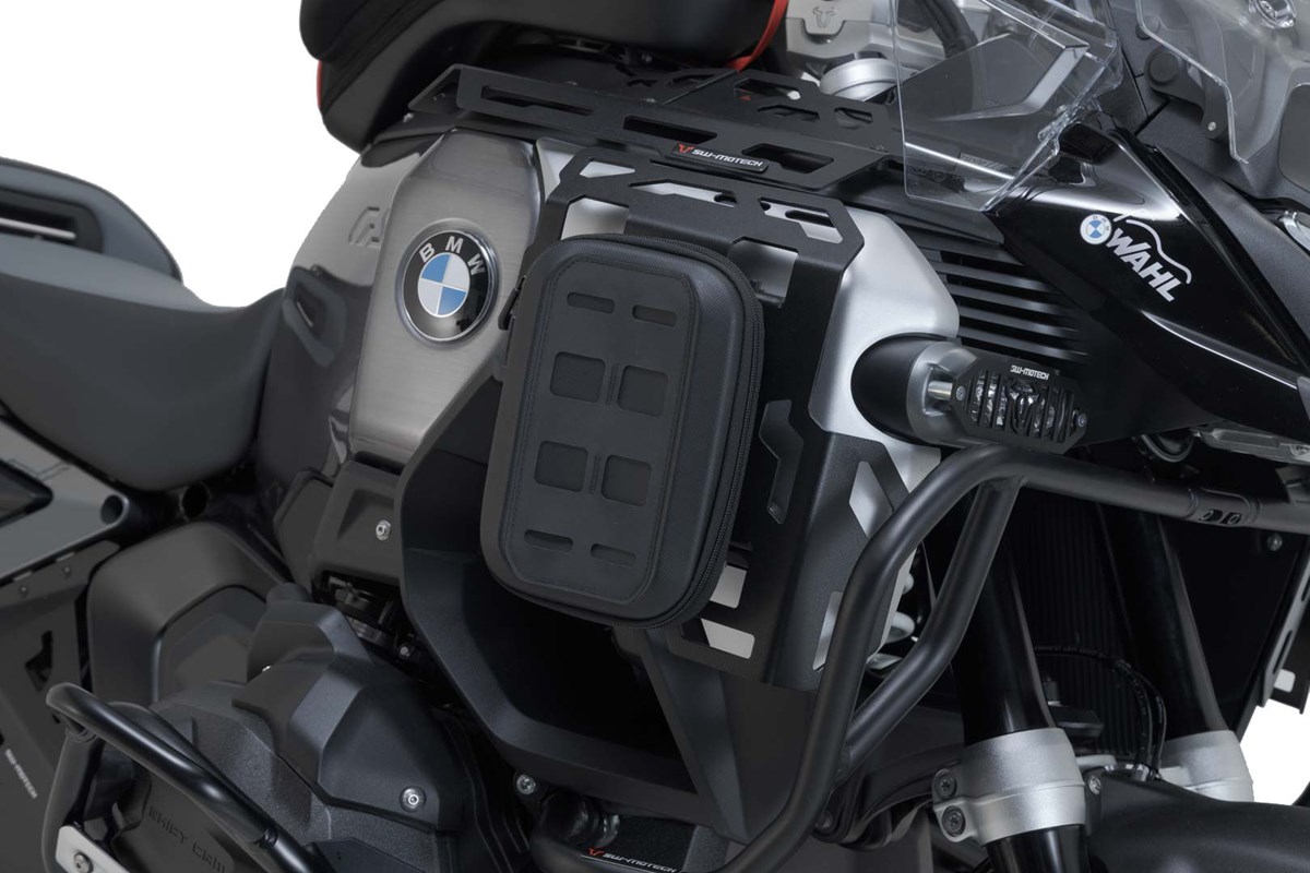 An diesem Gepäckträger für die Kühlerblende der BMW R 1300 GS Adventure lassen sich kleine Taschen für praktischen Gepäcktransport anbringen. Die Konstruktion aus 3mm Aluminiumblech ist der Linienführung des Motorrads angepasst und bietet Aufnahme für Zusatztaschen wie der PRO Pocket oder dem Drybag 80.