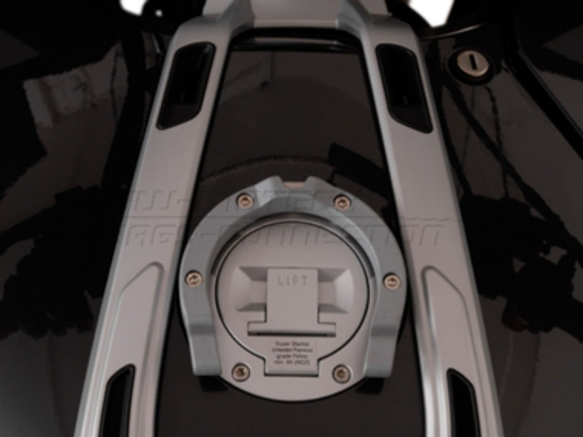 Der QUICK-LOCK Tankring bietet die perfekte Grundlage zur sekundenschnellen Montage und De-Montage von Tankrucksäcken, GPS- und Kamera-Haltern auf dem Tankdeckelring. Die Konstruktion vermeidet den Kontakt zum Fahrzeug und ist daher keine Gefahr für den Lack. Glasfaserverstärktes Nylon ermöglicht eine sichere und belastbare Arretierung.
