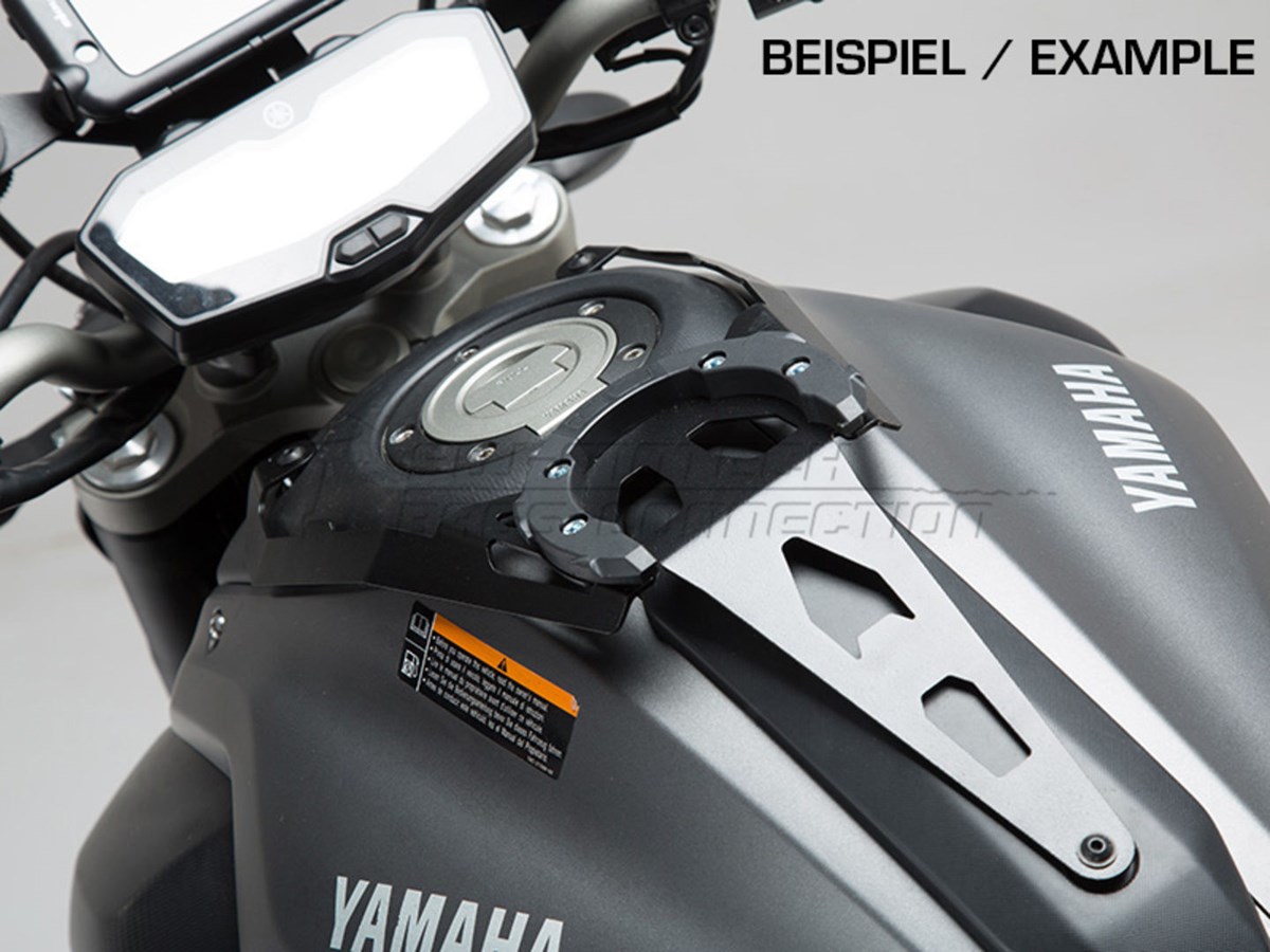 Der QUICK-LOCK Tankring bietet die perfekte Grundlage zur sekundenschnellen Montage und De-Montage von Tankrucksäcken, GPS- und Kamera-Haltern auf dem Tankdeckelring. Die Konstruktion vermeidet den Kontakt zum Fahrzeug und ist daher keine Gefahr für den Lack. Glasfaserverstärktes Nylon ermöglicht eine sichere und belastbare Arretierung.