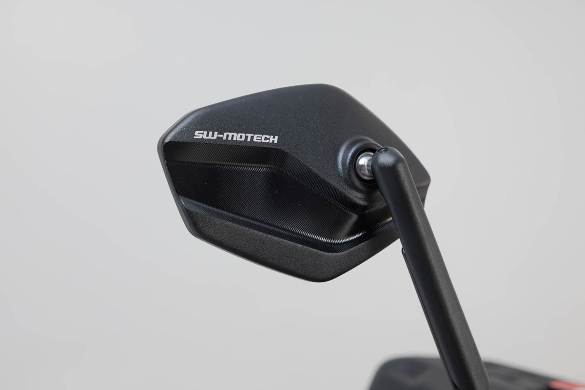 Die verstellbaren Spiegel im modernen und flachen Design fertigt SW-MOTECH aus schwarz eloxiertem Aluminium. Die Spiegelarme bestehen aus stufenlos verschiebbaren Elementen und sind jeweils um 30 Millimeter ausfahrbar. Die vielfältigen Einstellmöglichkeiten der Spiegel geben dem Piloten mehr Sicherheit durch besseren Überblick seines Umfeldes.