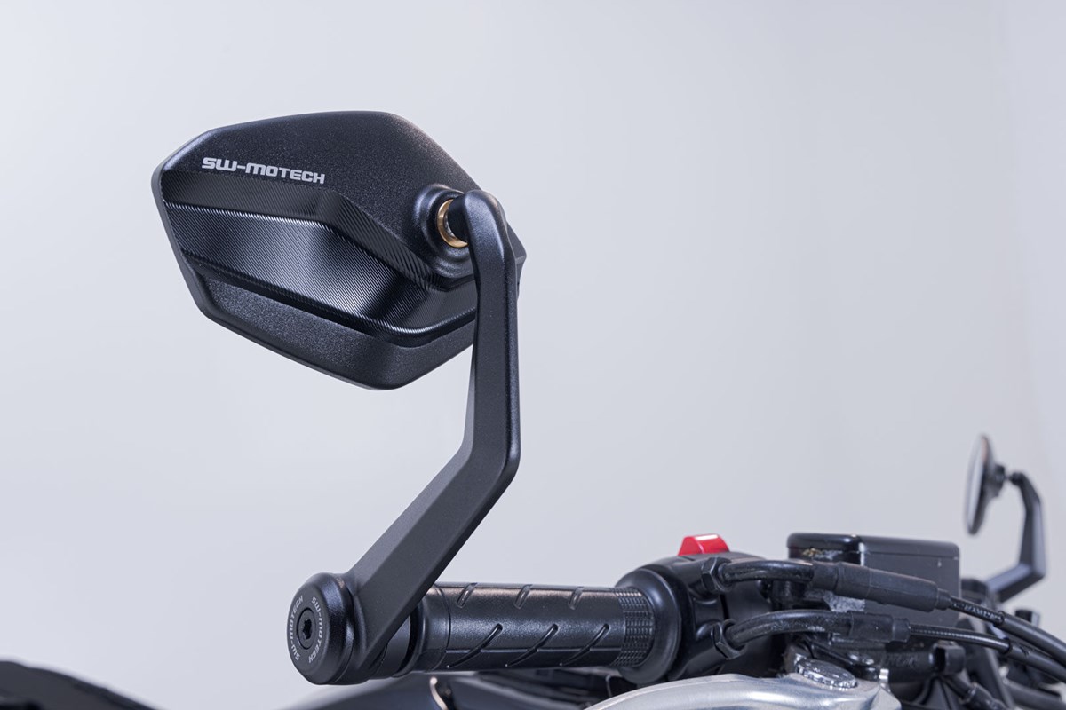 Umsicht in Perfektion: Tausche Standard mit Premium und geniesse die Aufmerksamkeit auf dem Parkplatz, die dein Motorrad mit diesen exklusiven Spiegeln auf sich ziehen. Und habe deine Mitfahrer auf der Strasse dabei immer sicher im Blick.