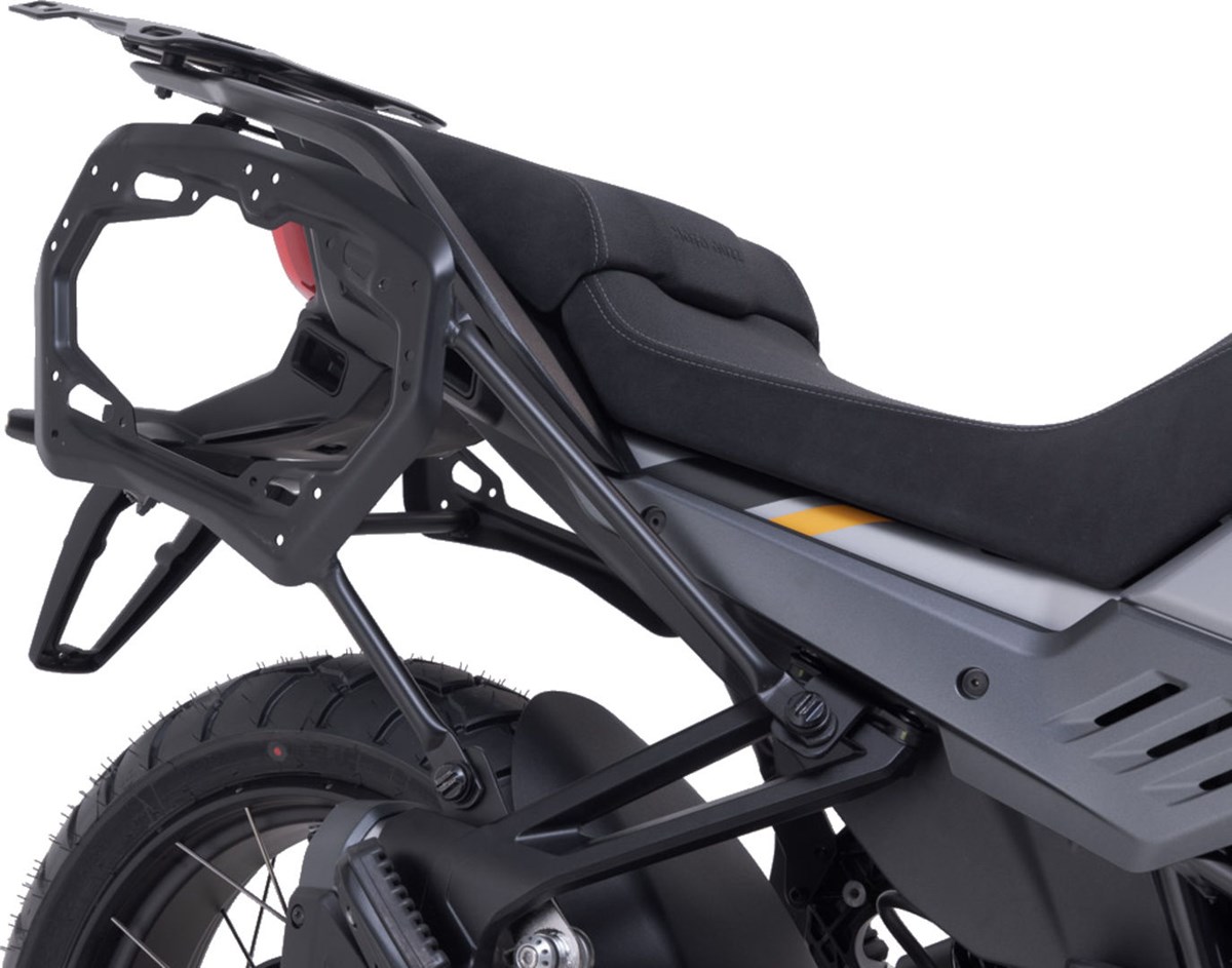 Der PRO Seitenträger gibt Seitenkoffern sowie der SysBag WP L sicheren Halt - die passenden Adapterkits sind separat erhältlich. Die zahlreichen Funktionsbohrungen des PRO Seitenträgers erlauben die Befestigung von anderem Zubehör.